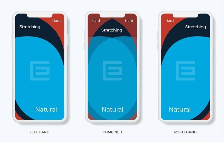 Đó là lý do tại sao thiết kế website cần tối ưu thanh điều hướng, menu, thậm chí là các nút CTA nằm trong không gian mà ngón cái của người dùng có thể chạm tới dễ dàng, giúp cải thiện UX cho trang web và tăng trải nghiệm thoải mái của khách hàng trên trang.