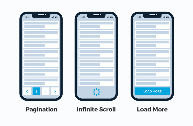 Nhiều khách truy cập không cần phải tải đến cuối trang để tìm thấy nội dung hữu ích với họ. Vậy tại sao cần tải những nội dung đó và làm tăng độ trễ tải trang web? Cách tiếp cận tốt hơn là hãy tải nội dung khi họ bắt đầu cuộn xuống trang hoặc cài đặt cấu trúc phân trang thông minh cho website của bạn.