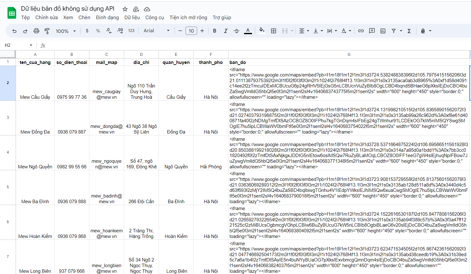 - Các dữ liệu địa chỉ quản lý trên 1 file google trang tính, dễ dàng cho việc thay dổi hay quản lý file.