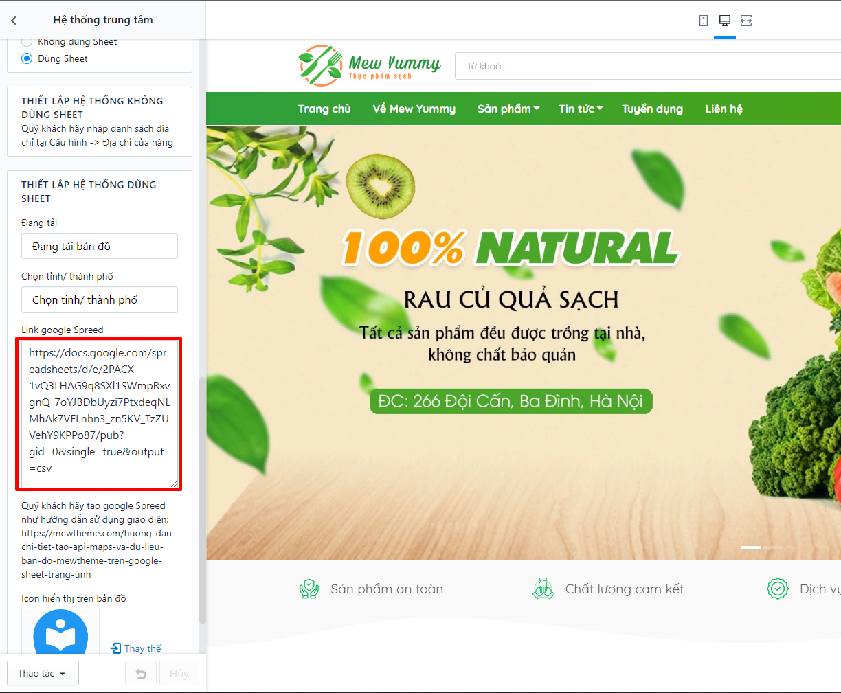 + Paste vào ô Link google spreed như mục tên trong ảnh đang trỏ.