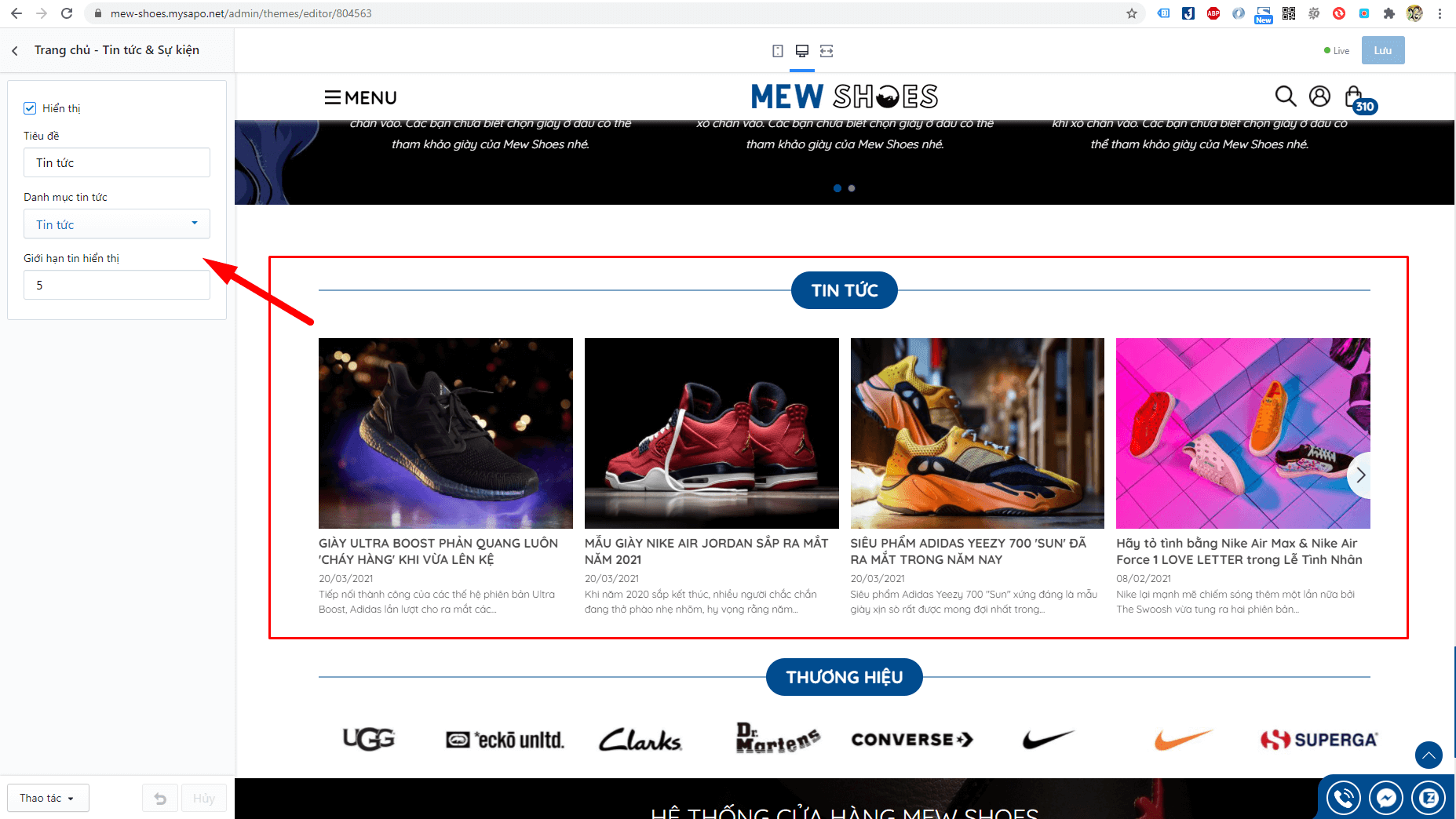 Thiết lập đơn giản với việc nhập tiêu đề và chọn danh mục tin cần hiển thị.