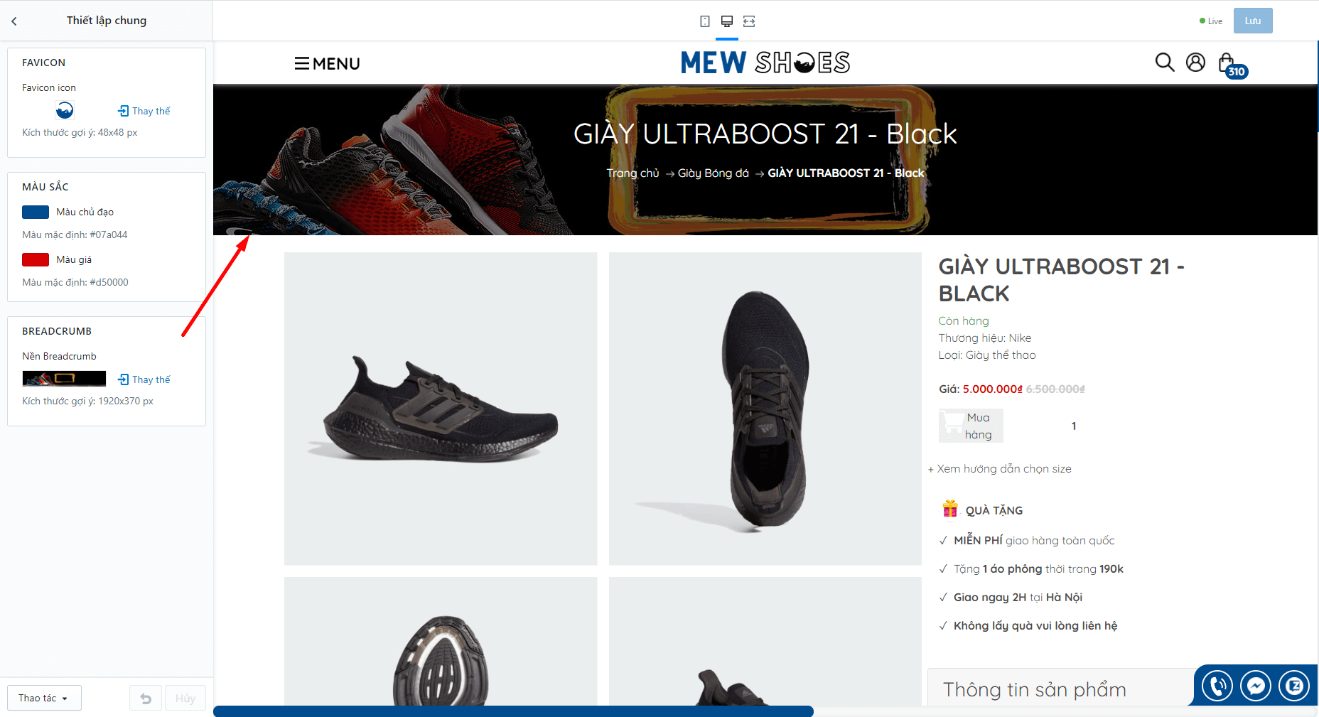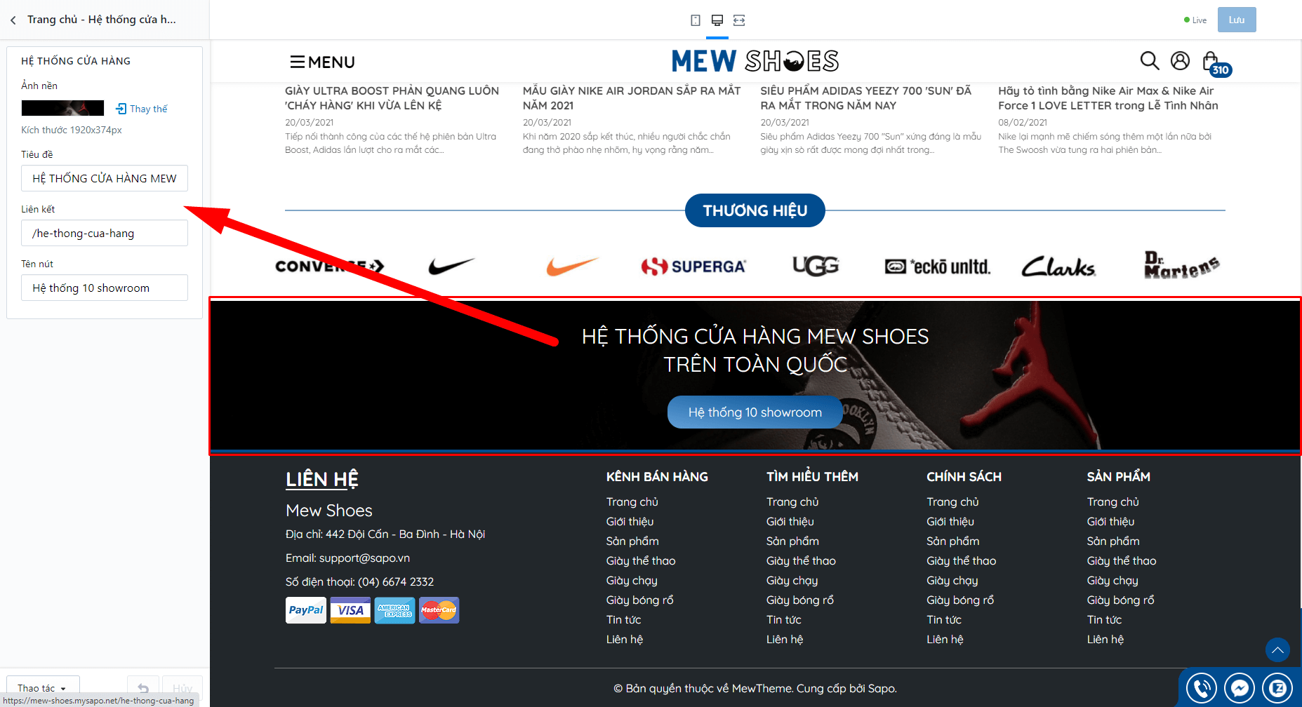 Thiết lập tiêu đề, background nền và gắn link tới Hệ thống Showroom của MewTheme.
