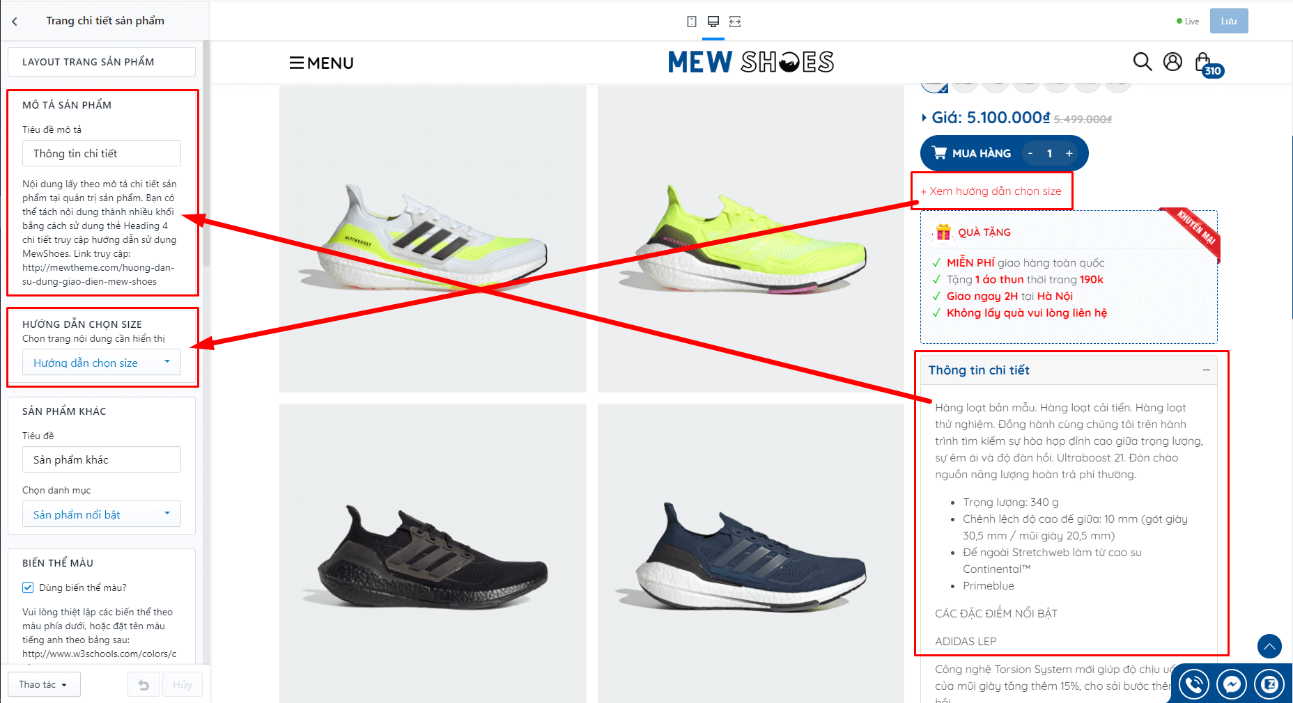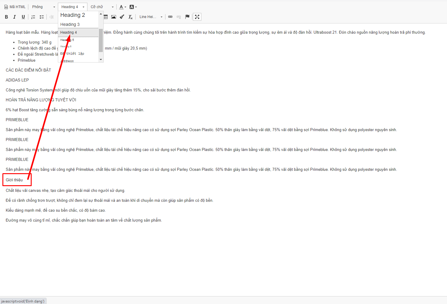 - Chi tiết hướng dẫn sử dụng Heading 4 để tách nội dung cho MewShoes
