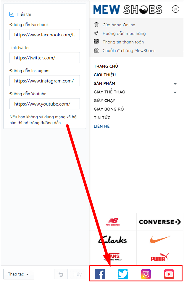 Đơn giản khi các bạn chỉ việc gắn link các mạng xã hội nếu có
