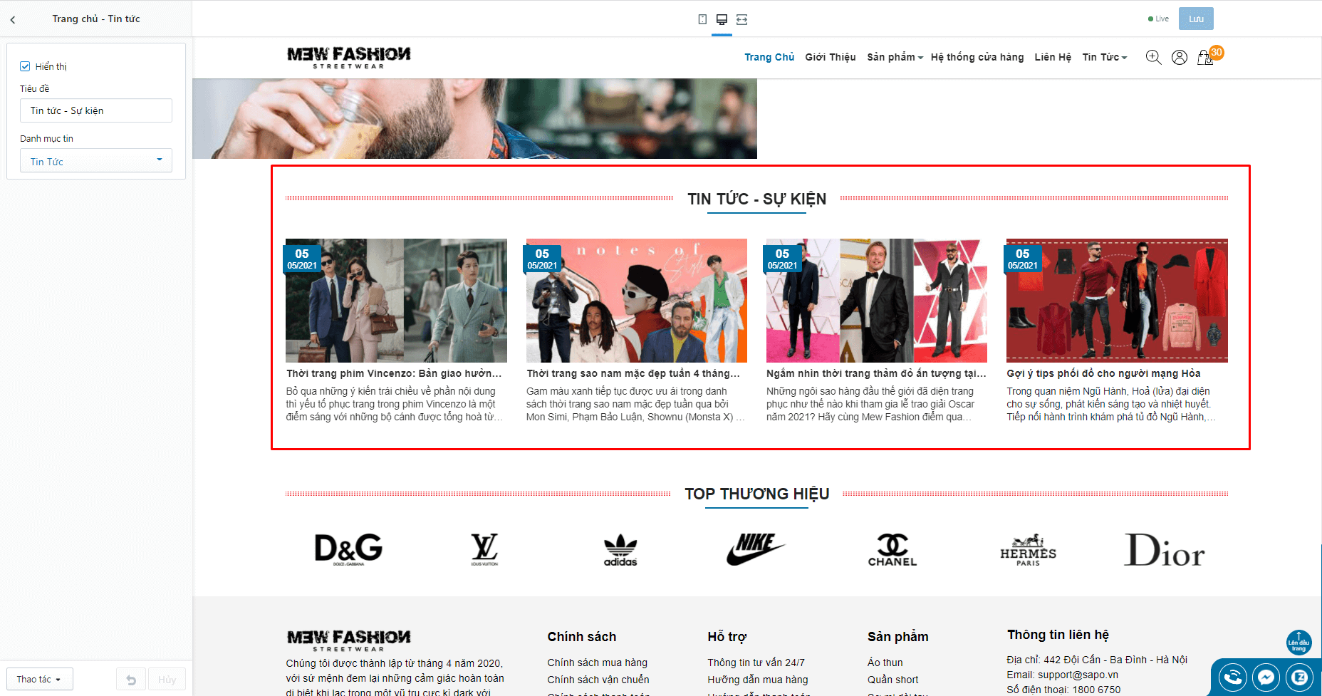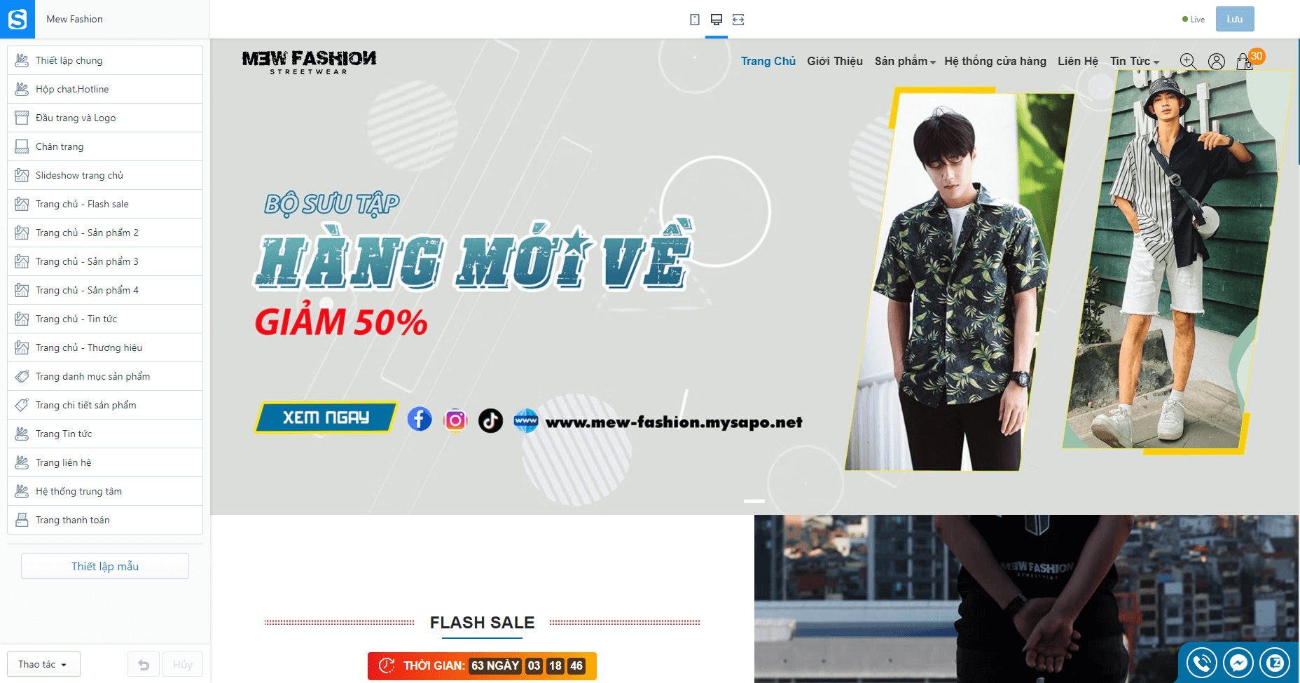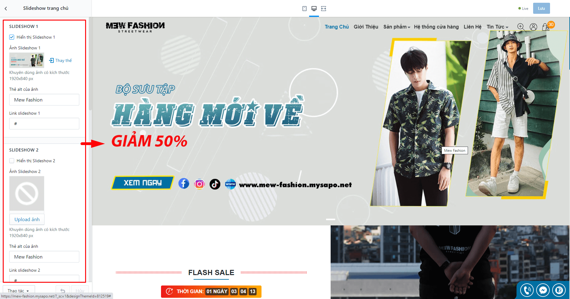 Mew Fashion đc trang bị sẵn 5 slide có thể bật tắt tùy ý cho các bạn hiển thị (Kích thước tiêu chuẩn: 1920x840px)