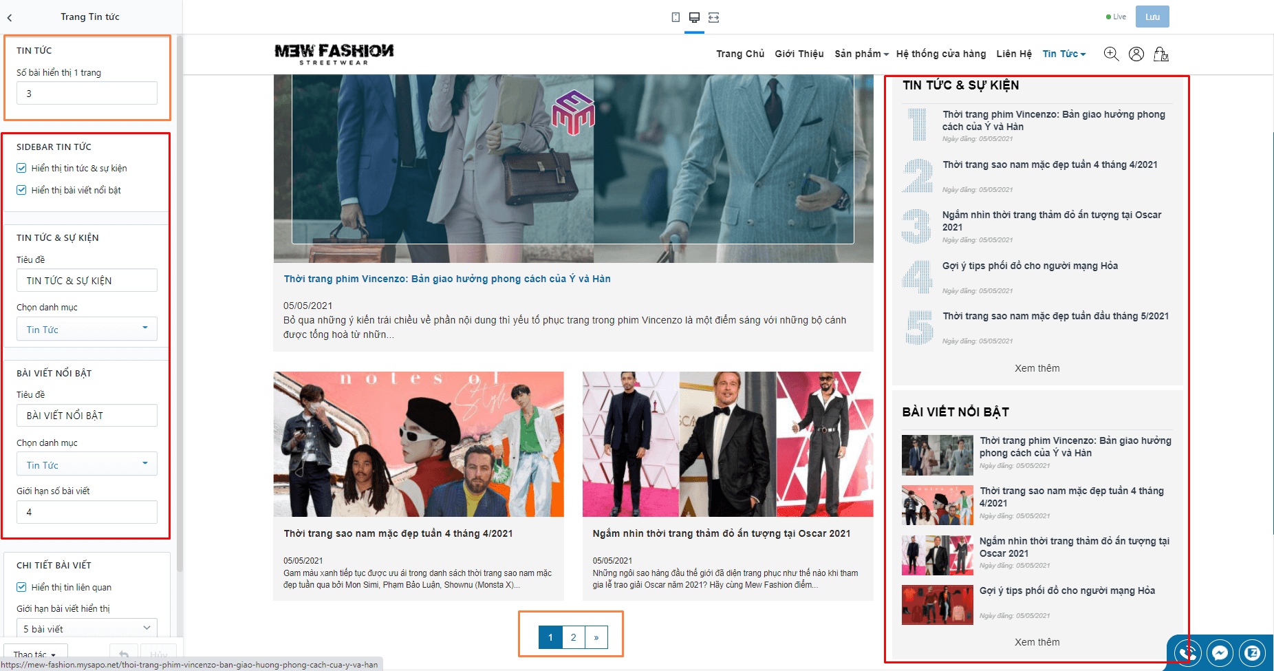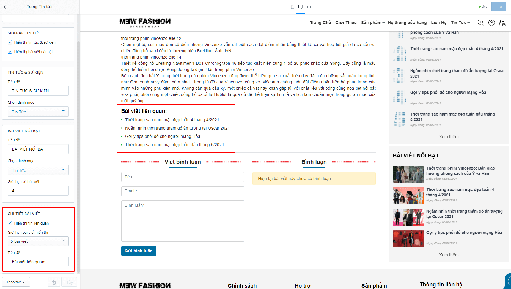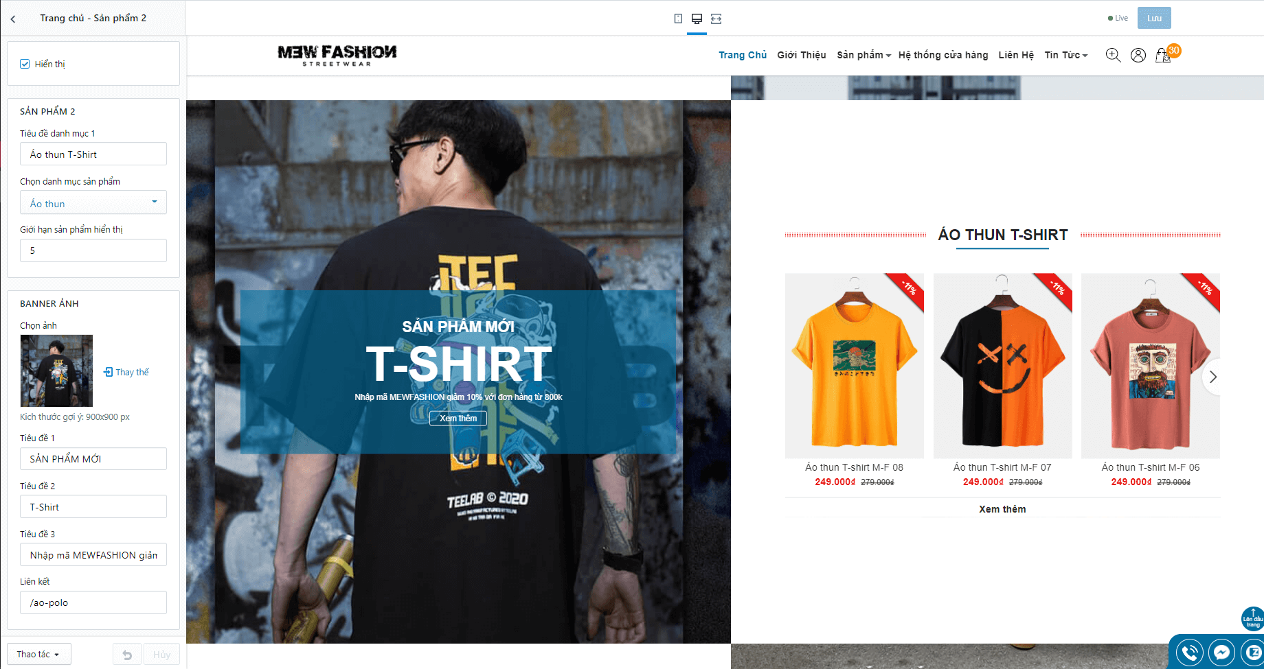 Mew Fashion đc trang bị sẵn 5 slide có thể bật tắt tùy ý cho các bạn hiển thị (Kích thước tiêu chuẩn: 1920x840px)