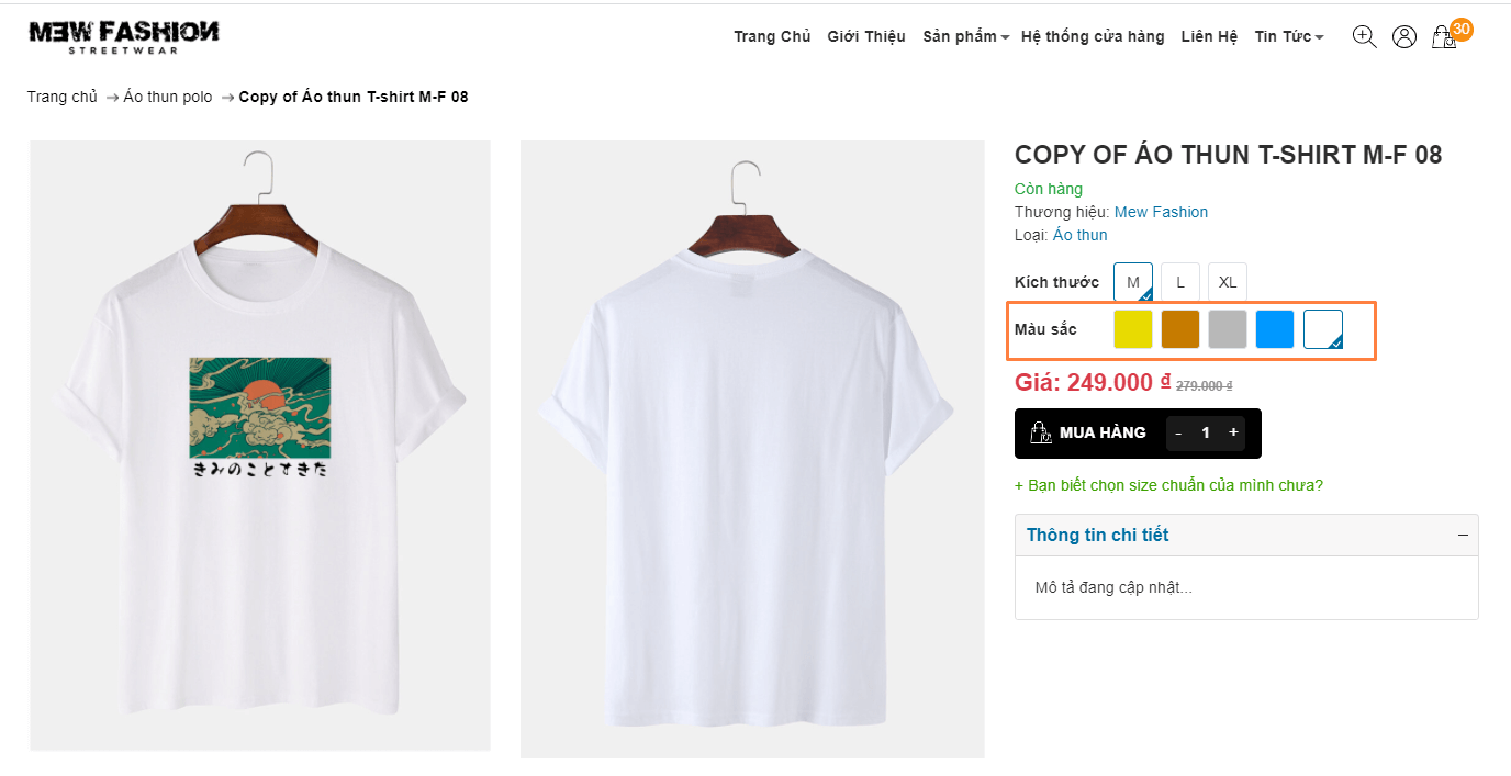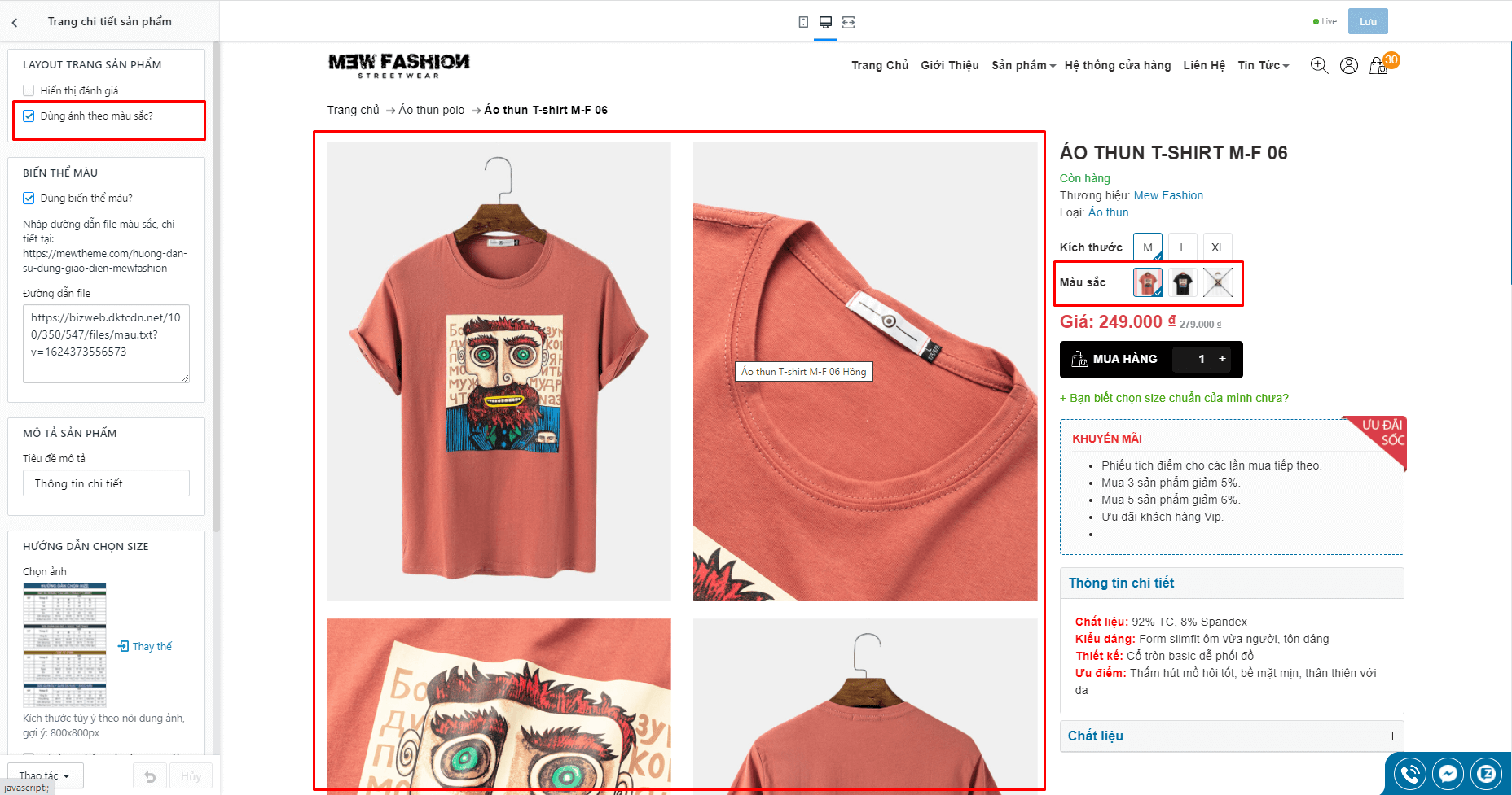 Tính năng nổi bật Hiển thị list ảnh theo phiên bản màu sắc