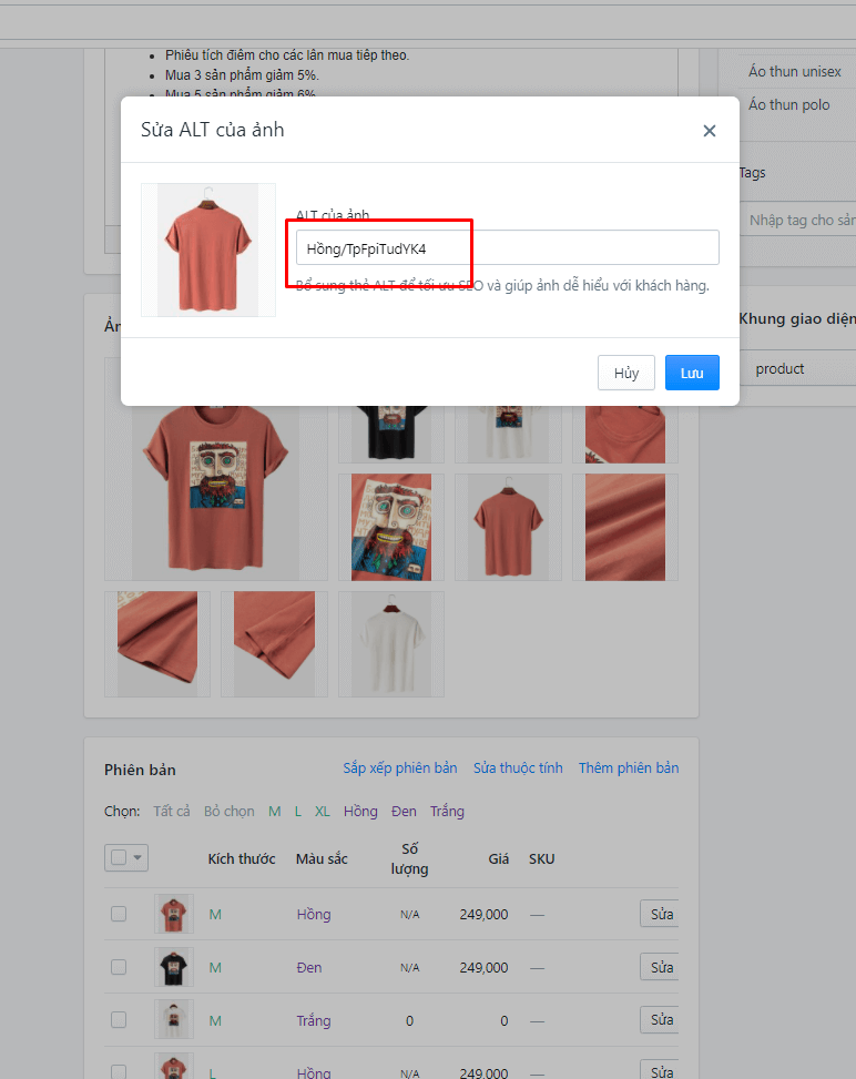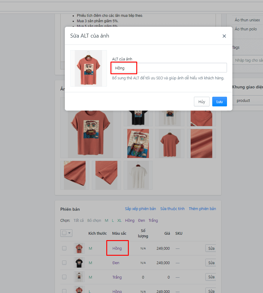 - Bước 2: Tại alt của ảnh đại diện sẽ nhập alt bằng chính xác tên thuộc tính màu tương ứng.