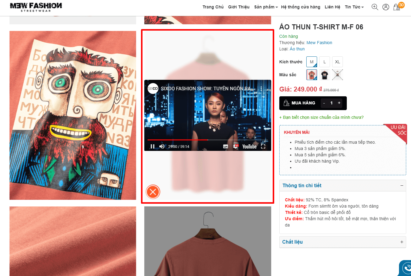 - Tinh năng video trên ảnh đại diện sản phẩm - giúp web site của bạn phong phú hơn về nội dung truyền tải cùng với việc tạo tương tác giữa web và channel youtube của bạn