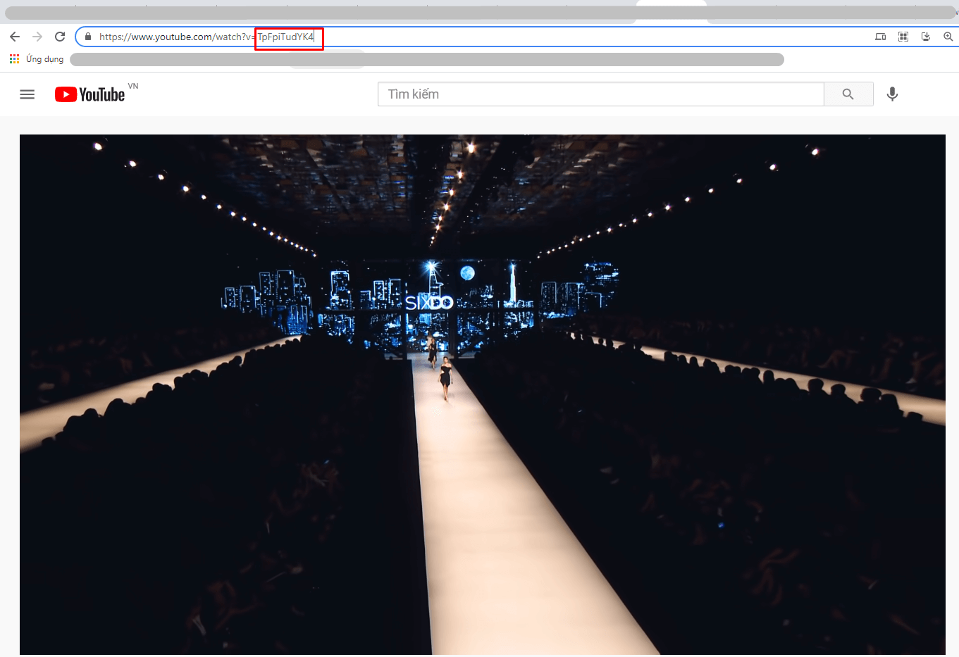 Mã video bạn hãy lấy đoạn mã ngắn phía sau cụm 'watch?v=' trên link youtube như hình: