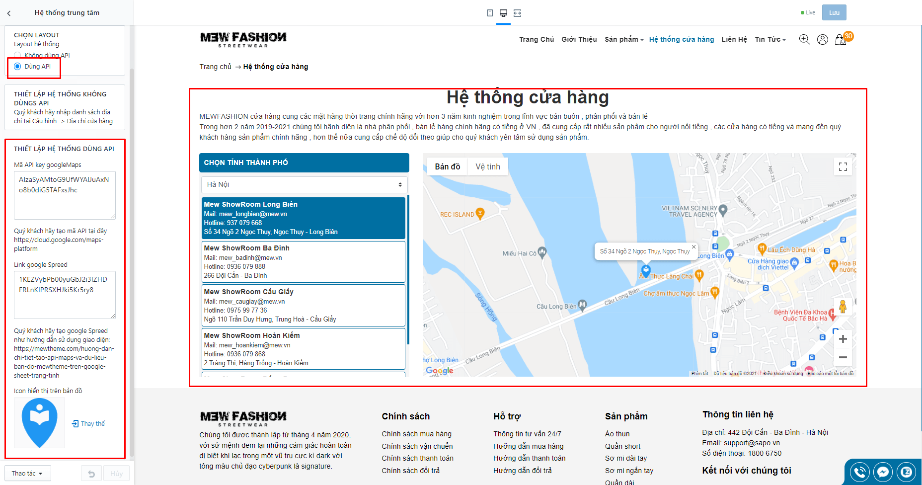 Với hệ thống trung tâm sử dụng API Google Maps như 1 đặc thù của MewTheme bạn có thể xem: Hướng dẫn chi tiết tạo API Maps và dữ liệu bản đồ trên google sheet(Trang tính) tại đây.