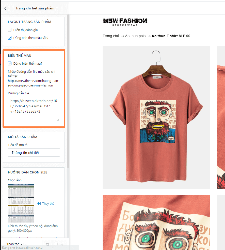 Tính năng "Biến thể màu theo file" - Tính năng nấng cấp này giúp KH không bị hạn chế việc thiết lập màu như các giao diện khác