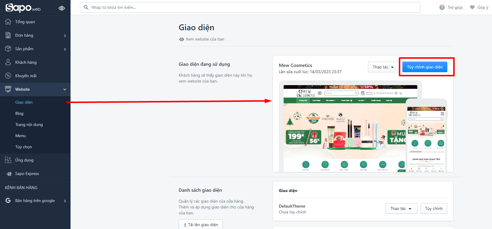 Truy cập Admin > Thiết lập giao diện > Thiết lập chung
