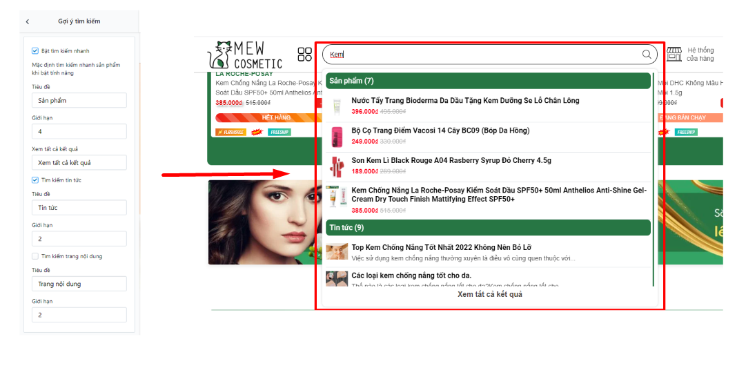 MEW Smart Search cải tiến bộ tìm kiếm của website, giúp khách hàng tìm được sản phẩm, bài viết nhanh chóng, gia tăng trải nghiệm người dùng và gia tăng tỷ lệ chốt đơn hàng.