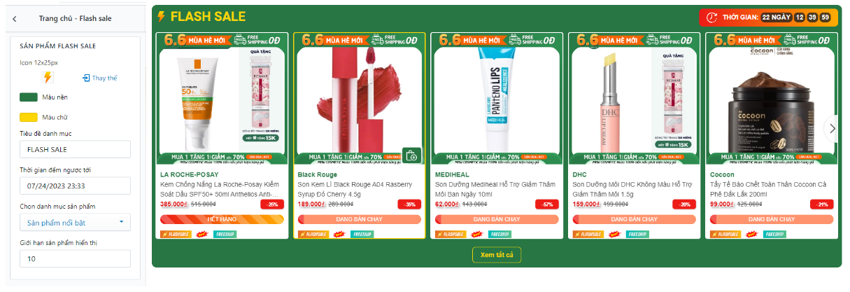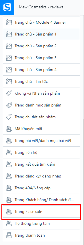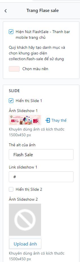 Vào thiết lập tùy chỉnh > Trang Flash sale