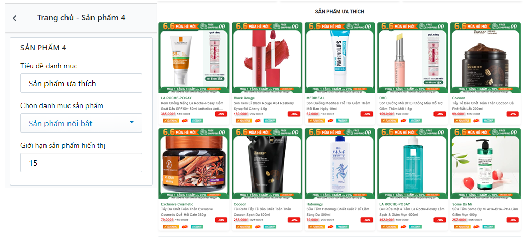 - Hiển thị các sản phẩm đang lựa chọn của cửa hàng được khuyến mãi