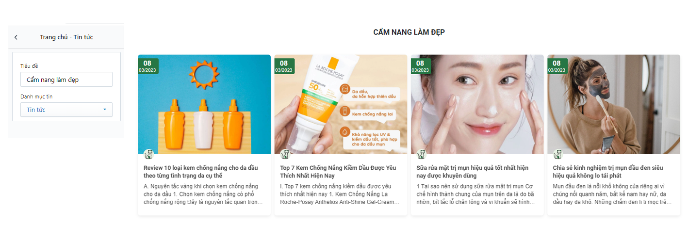 - Thay đổi danh mục tin tức hiển thị, giới hạn 4 tin tức hiển thị.