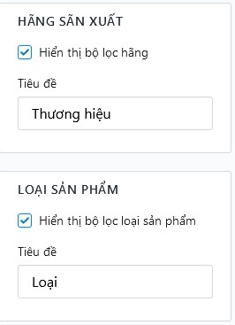 - Hãng sản xuất và loại, phần lọc này sẽ được tự động theo hệ thống, quý khách chỉ cần nhập hãng và loại ở quản trị sản phẩm