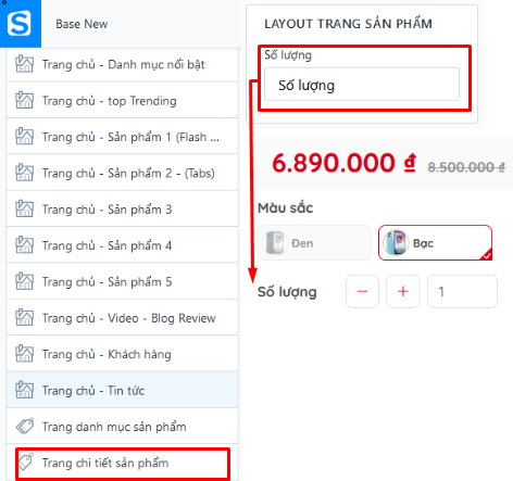 - Thiết lập/ quản lý các module có trên layout chi tiết sản phẩm