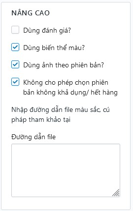 - Dùng đánh giá, trong trường hợp quý khách cài app "Đánh giá sản phẩm" từ kho app của Sapo, vui lòng tick chọn mục này