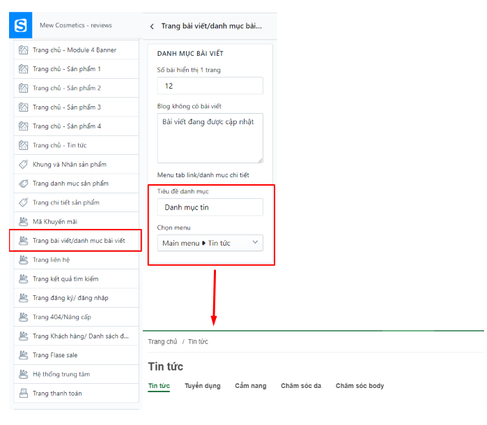 - Thiết lập/quản lý cho layout trang danh mục bài viết