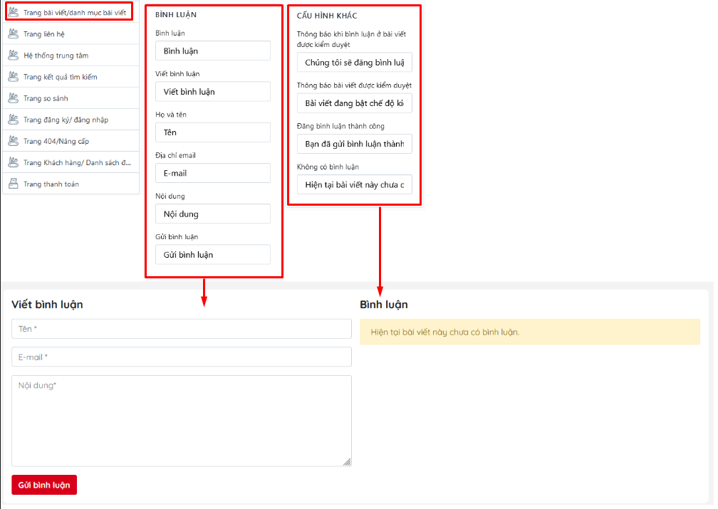 - Thay đổi tiêu đề một số thông báo, bình luận... quý khách có thể thay đổi theo mong muốn hoặc sử dụng khi ngôn ngữ mong muốn không phải là tiếng Việt