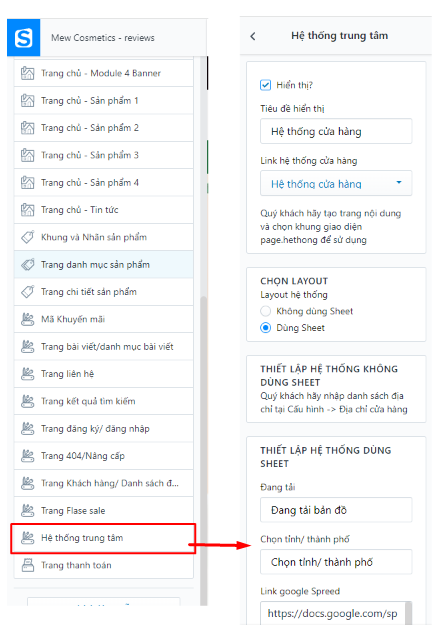 - Không sử dụng sheet. Quý khách hãy nhập danh sách địa chỉ tại Cấu hình -> Địa chỉ cửa hàng