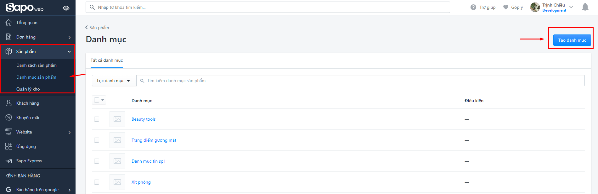 Vào Sản phẩm > Danh mục sản phẩm > Thêm danh mục sản phẩm