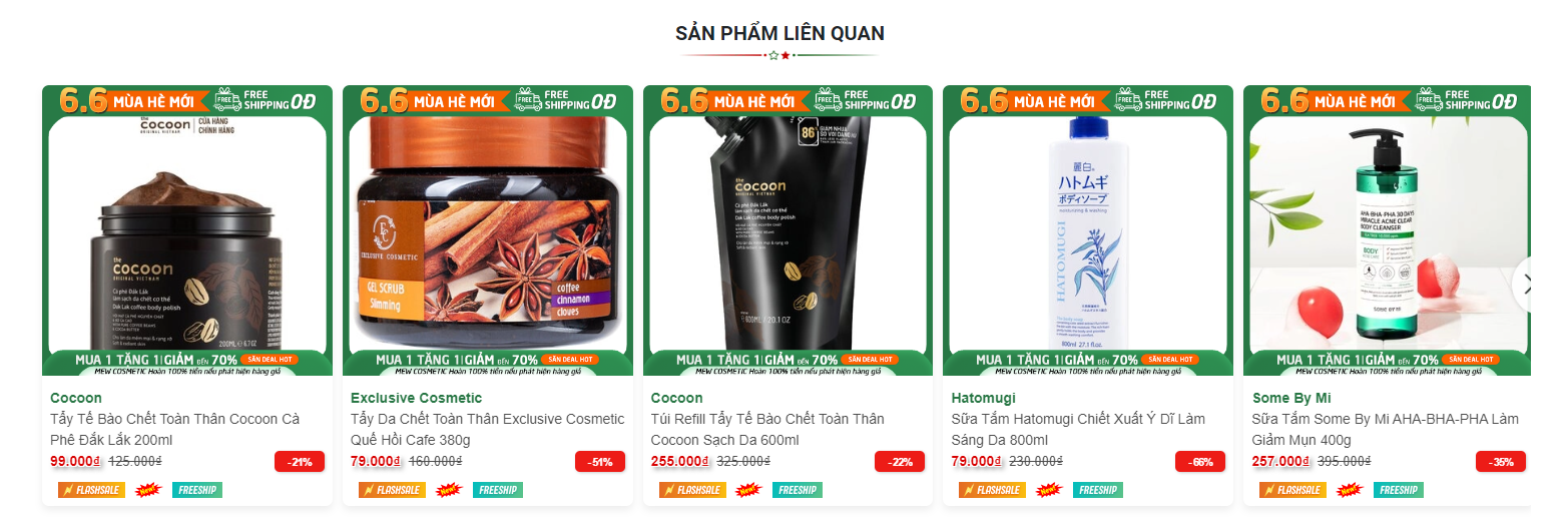 Các sản phẩm liên quan sẽ được hiển thị ở trang chi tiết sản phẩm được gợi ý theo danh mục (collection).