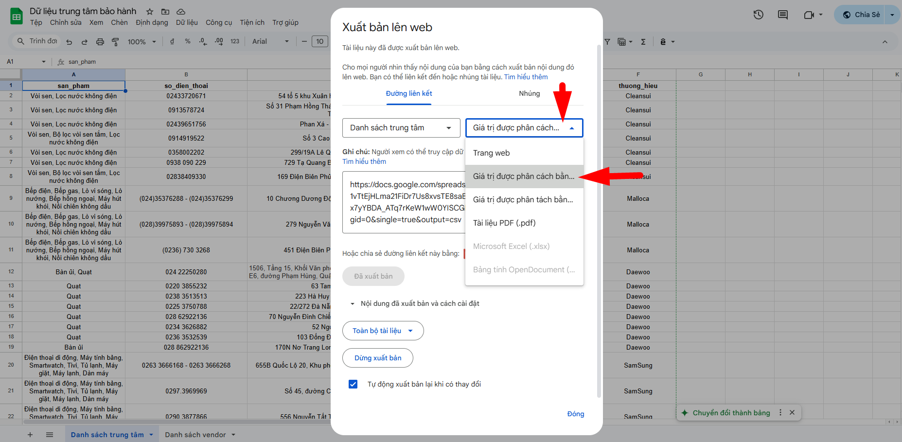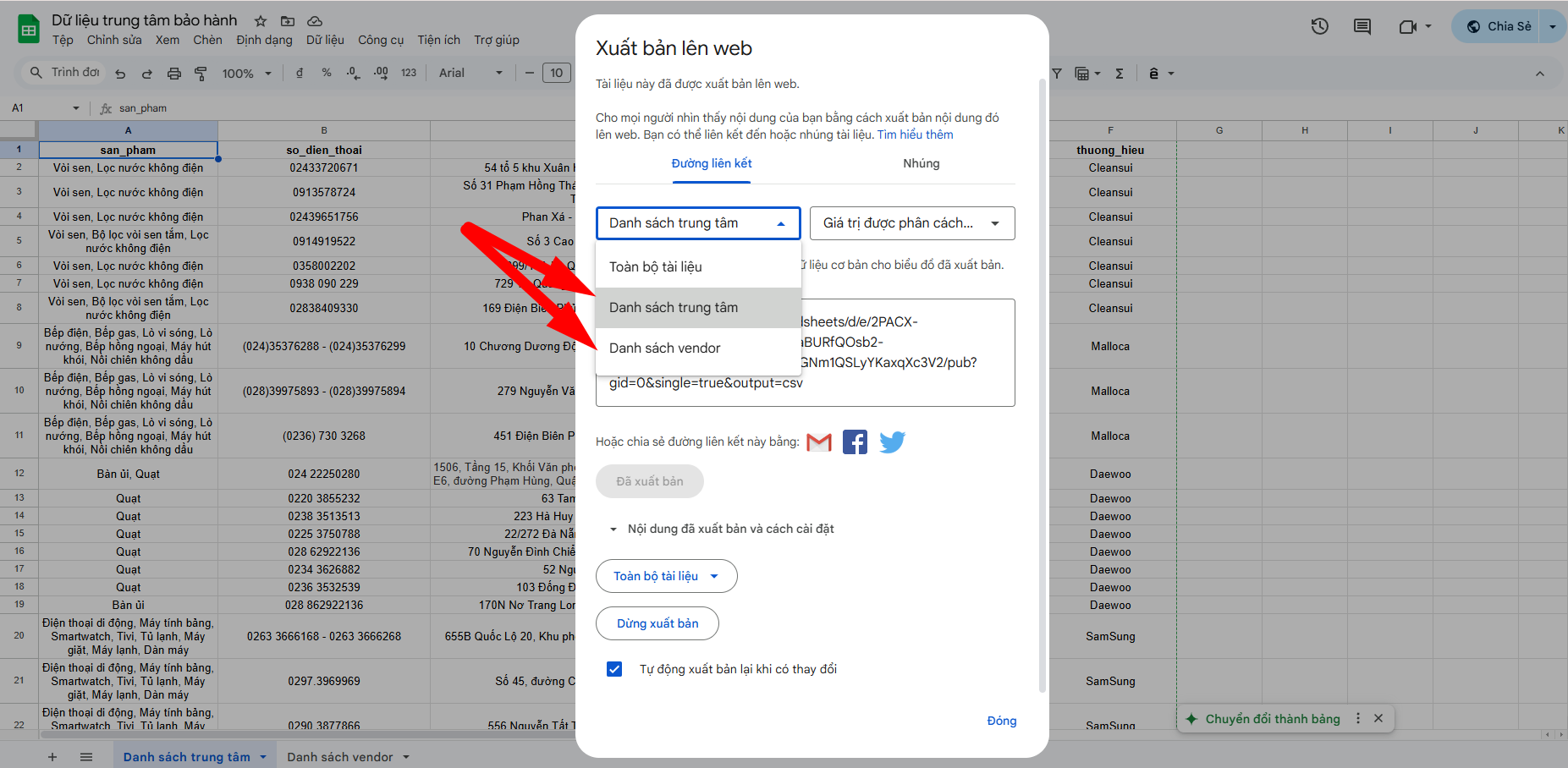 - Sử dụng dữ liệu file google sheet để lấy giữu liệu hiển thị trên wedsite