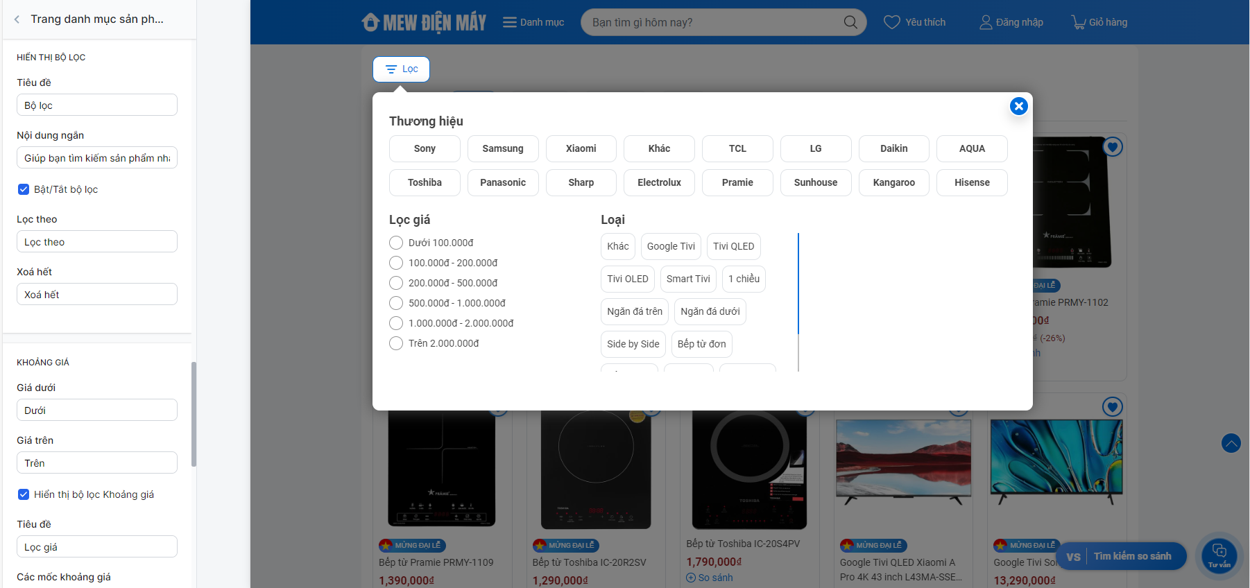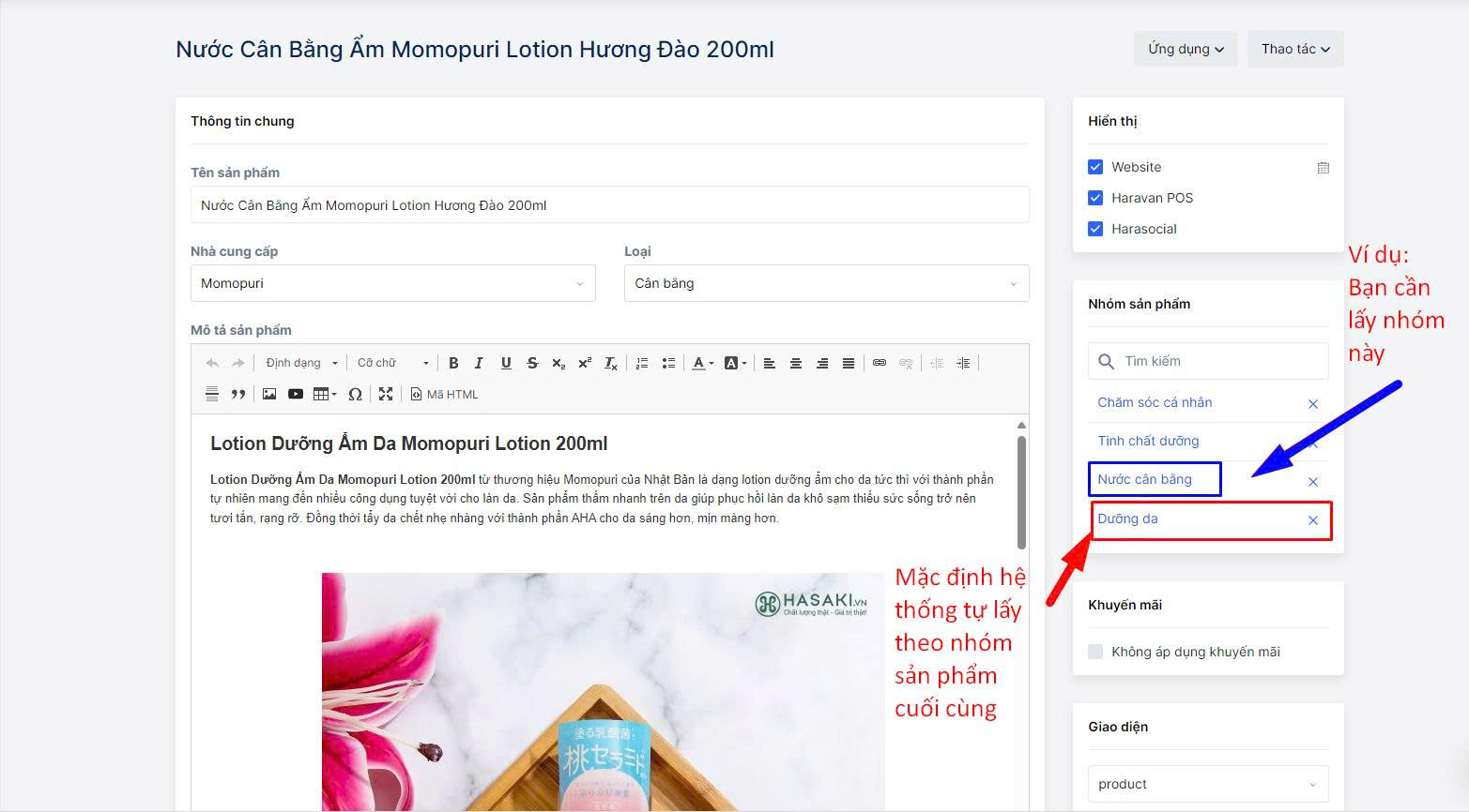 - Thiết lập chọn 2 tab nhóm sản phẩm: