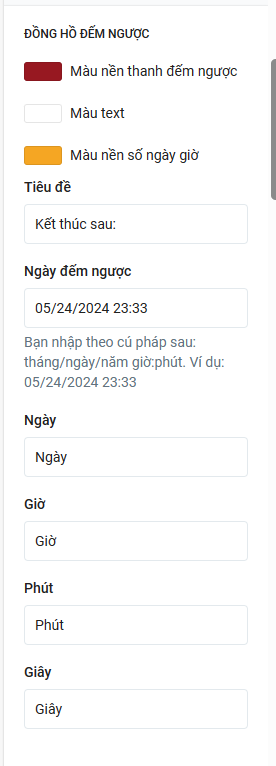 - Thiết lập đồng hồ đếm ngược. Bạn nhập theo cú pháp sau: tháng/ngày/năm giờ:phút. Ví dụ: 05/24/2024 23:33