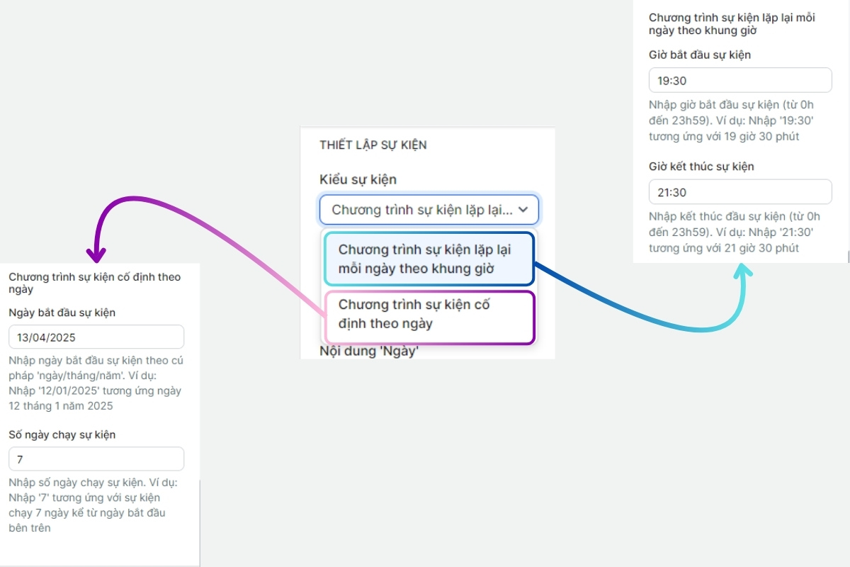 Bạn sẽ nhập ngày bắt đầu sự kiện và số ngày chạy sự kiện