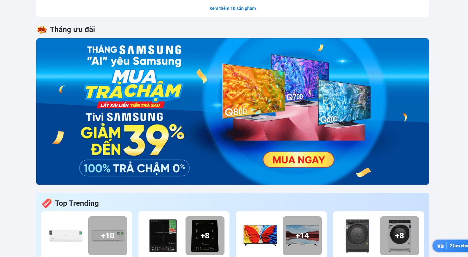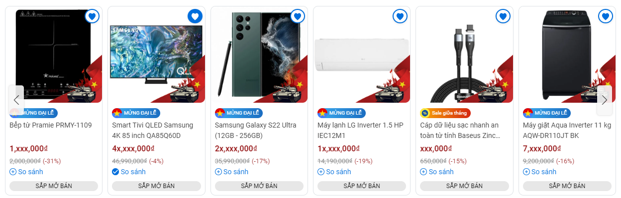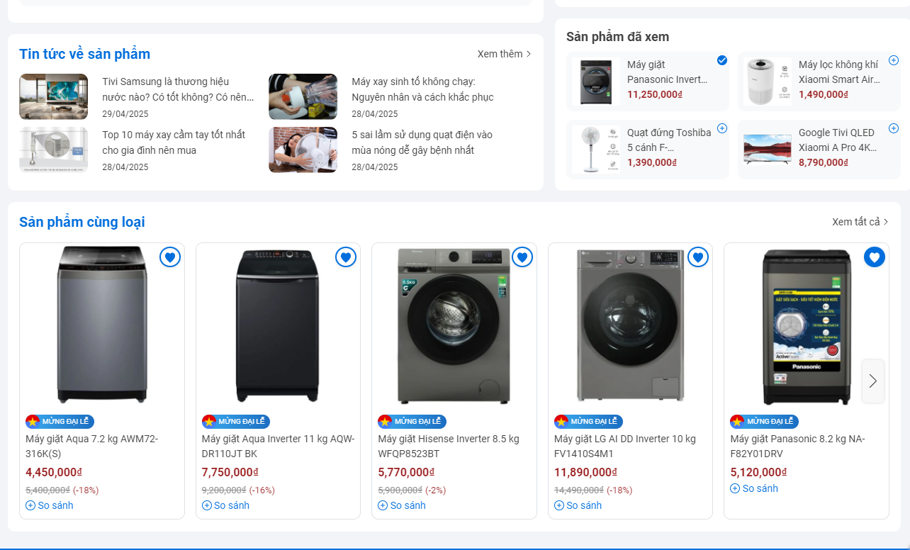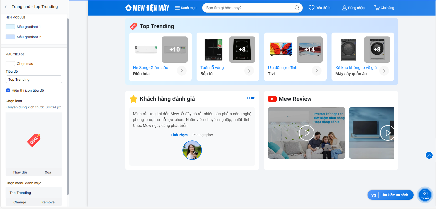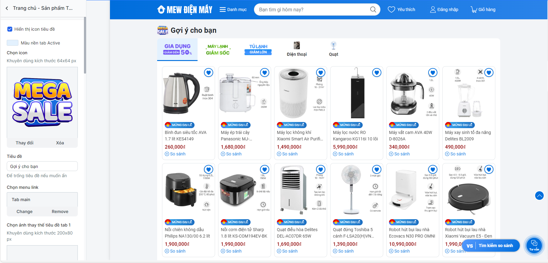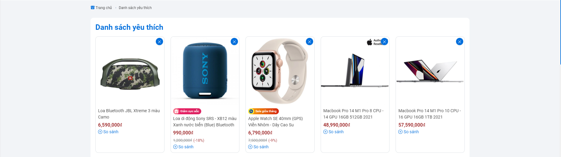Giao diện được tích hơp tính năng so sánh sản phẩm đặc biệt.