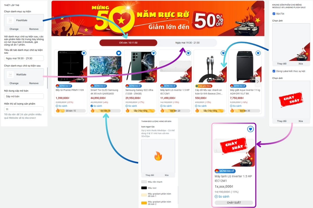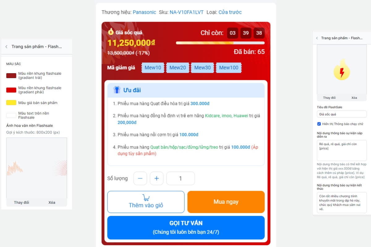Thiết lập đối với sản phẩm nằm trong chương trinh FlashSale gồm: