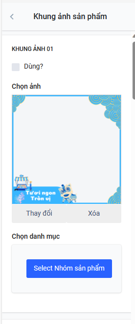- Mỗi khung sẽ tương ứng với 1 lựa chọn nhóm sản phẩm
