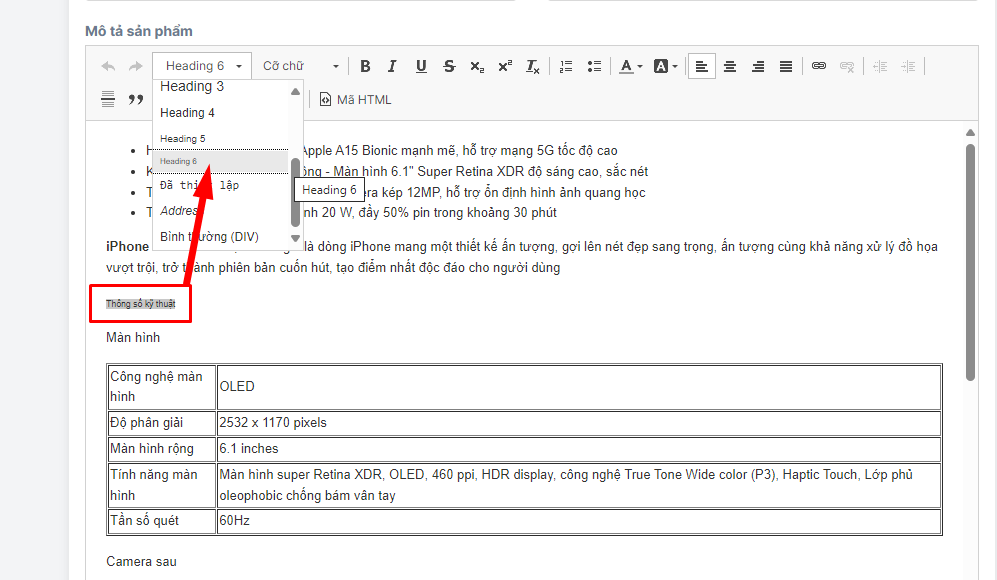 Với tính năng này chủ shop chỉ cần làm thông số kĩ thuật đơn giản, MewMobile sẽ tự động ghép từ khóa chính của thống số kĩ thuật để so sánh trực tiếp với nhau.