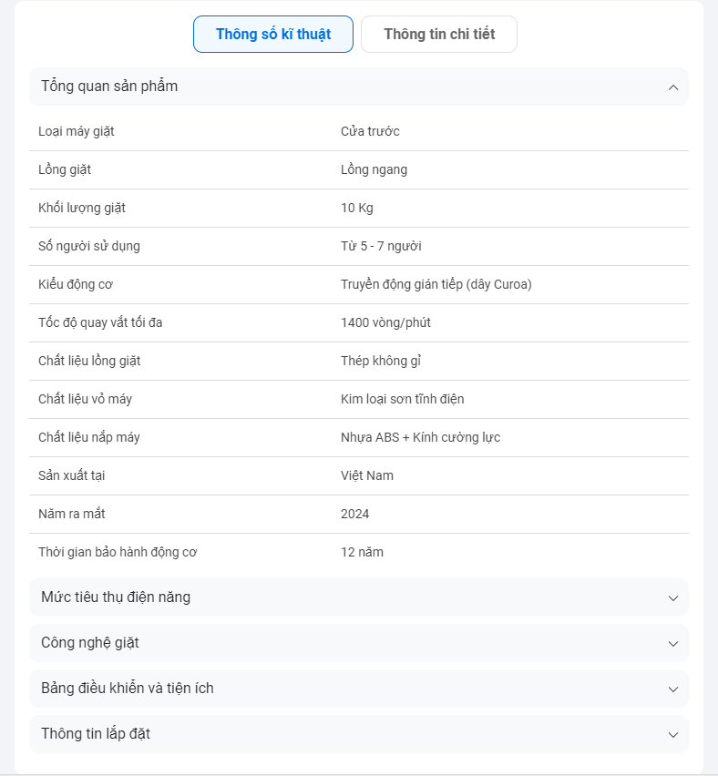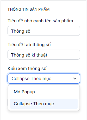 - Thiết lập dễ dàng chi tiết theo các mục đã có trong quản trị: