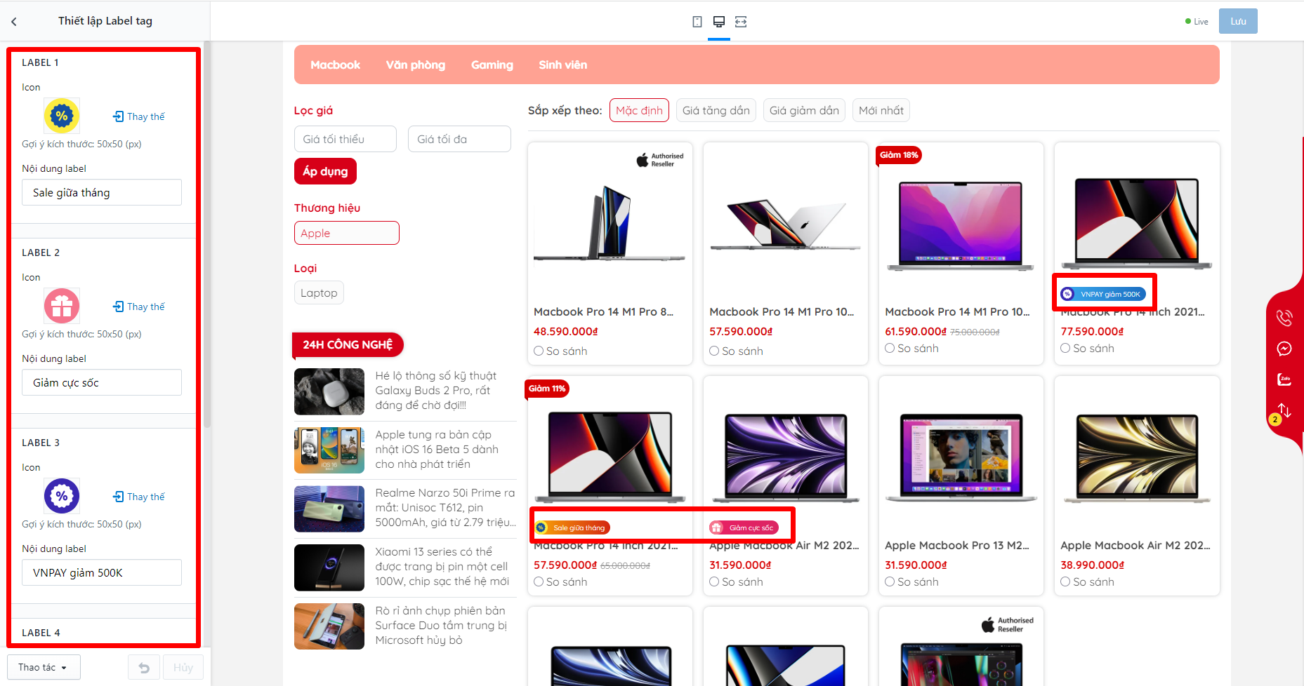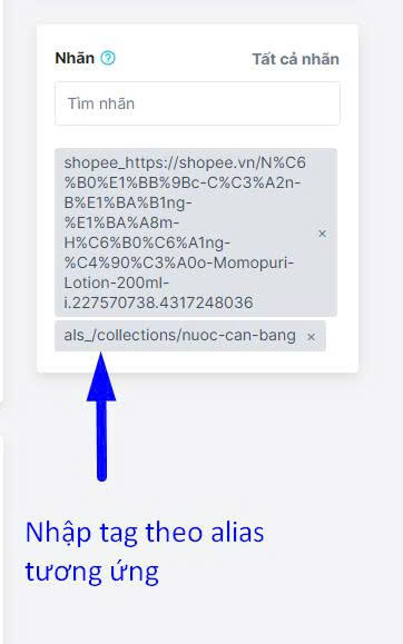 - Nhập tag label tùy ý vào mỗi sản phẩm bất kỳ cần sử dụng label tương ứng