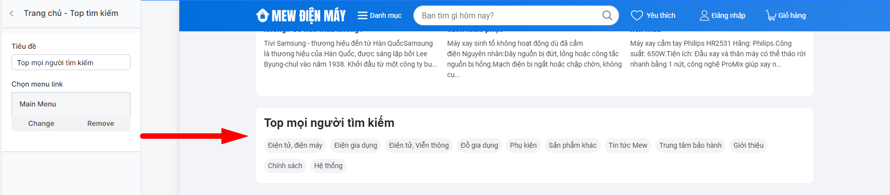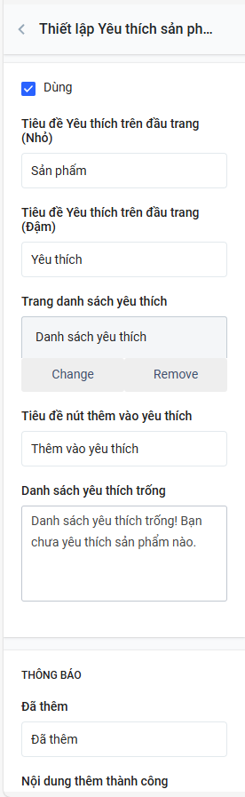 - Thiết lập các nội dung cơ bản của tính năng và liên kết tới trang nội dung yêu thích