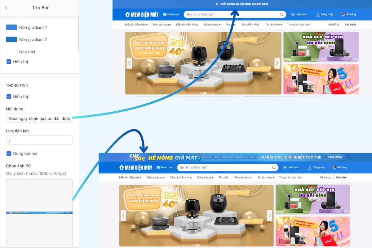 - Thiết lập dùng nội dung hoặc dùng ảnh banner cho topbar