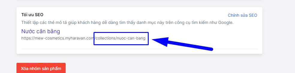 - Trong đó tên đường dẫn nhóm sản phẩm lấy như ảnh: