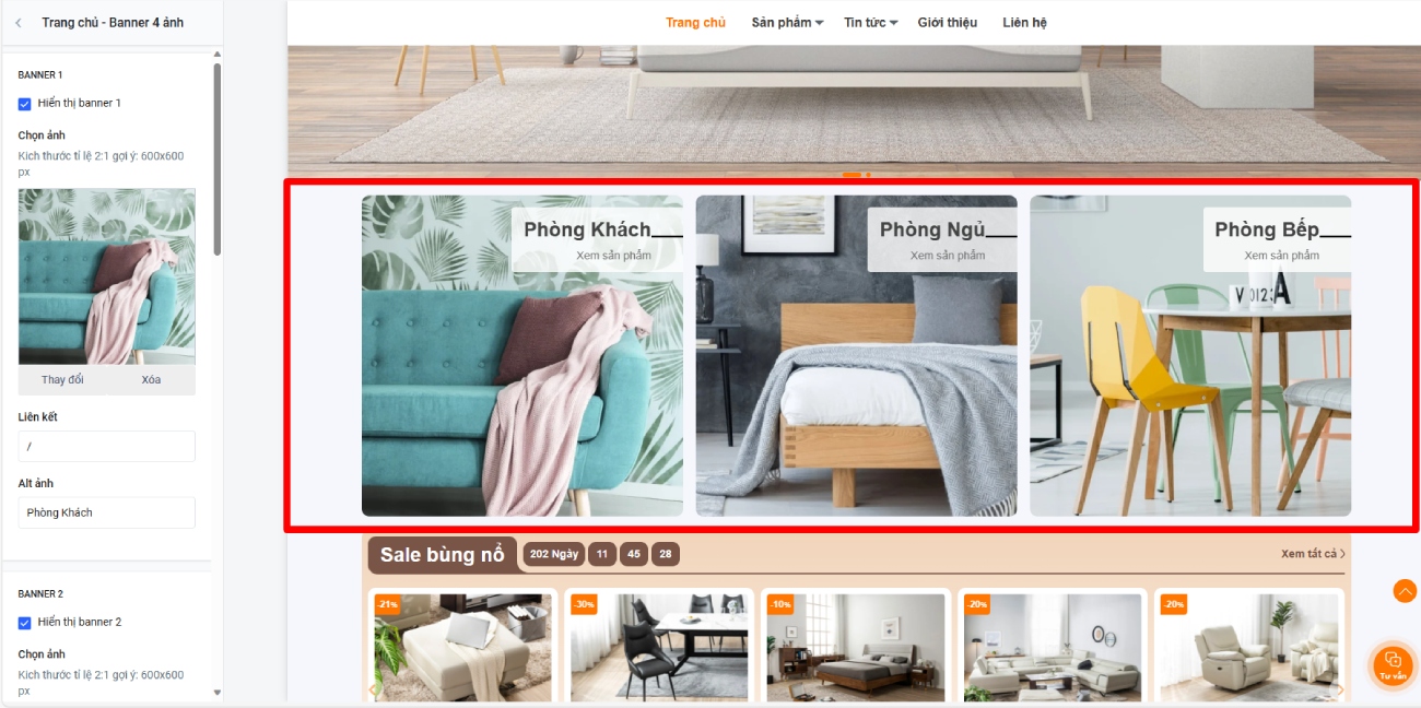 Cho phép bạn hiển thị 4 ảnh banner dạng slide: