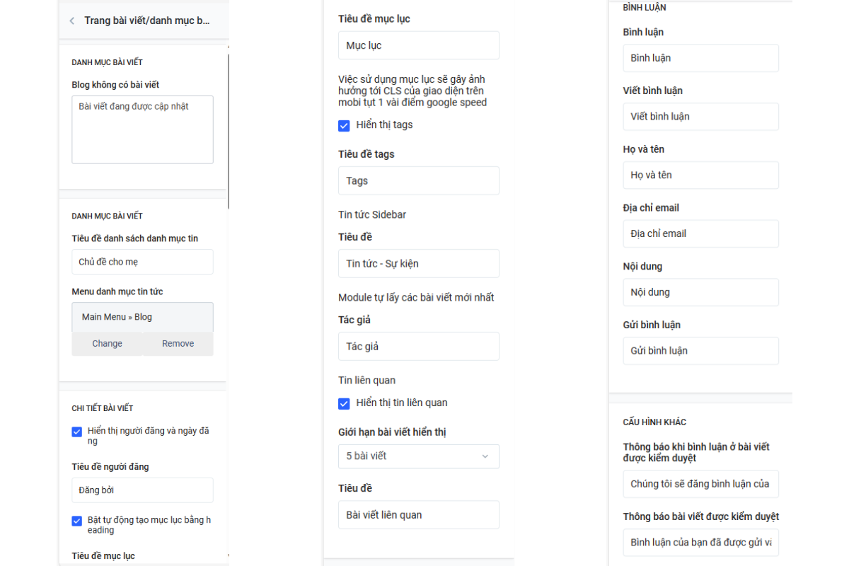 - Thiết lập tuỳ chỉnh cho một số tiêu đề của bình luận và các mục liên quan