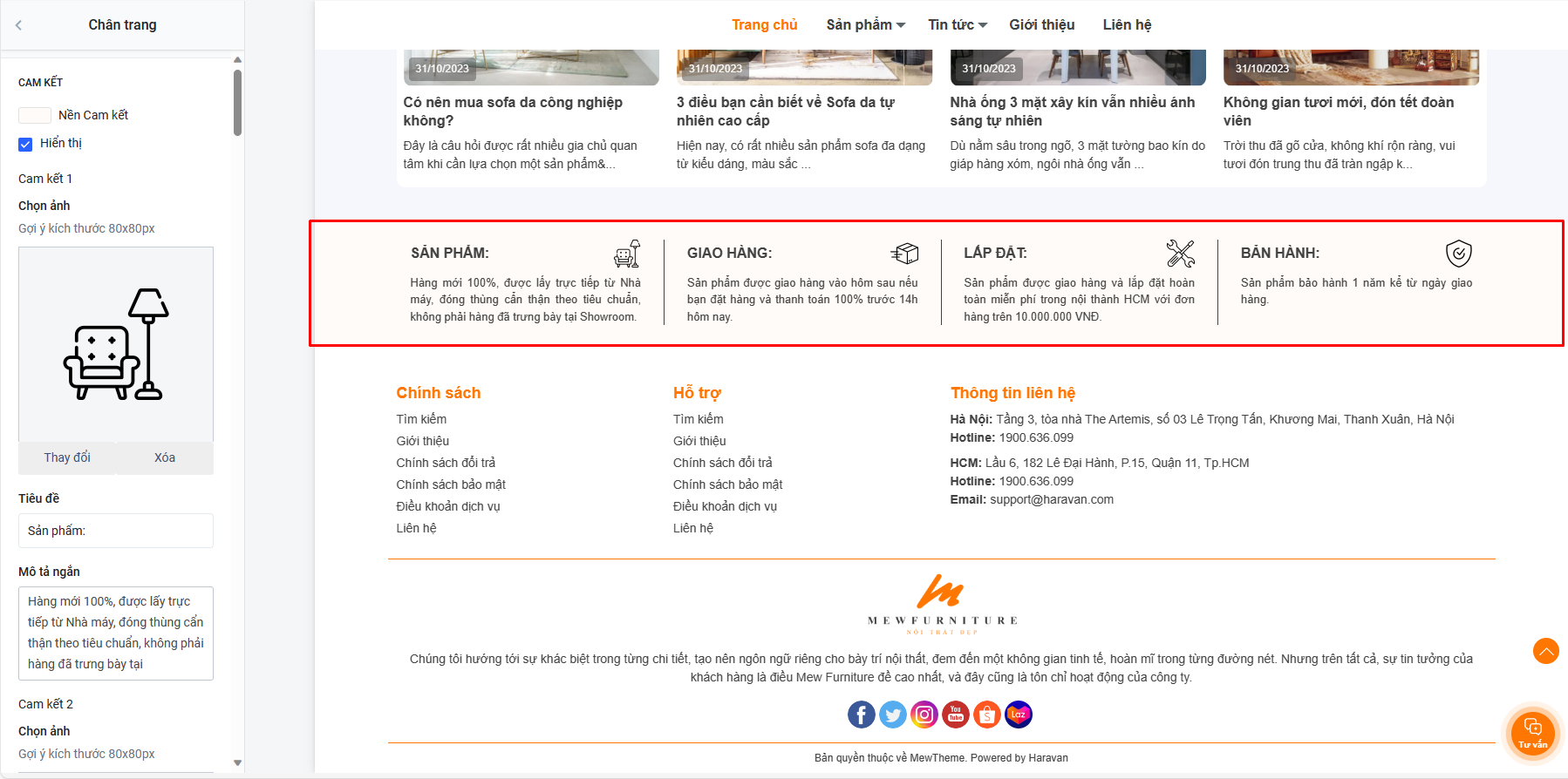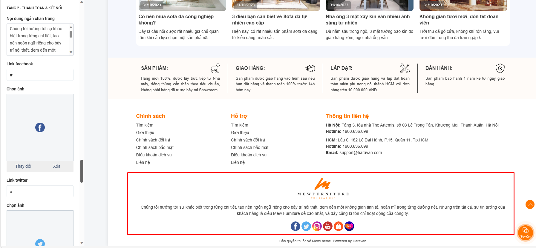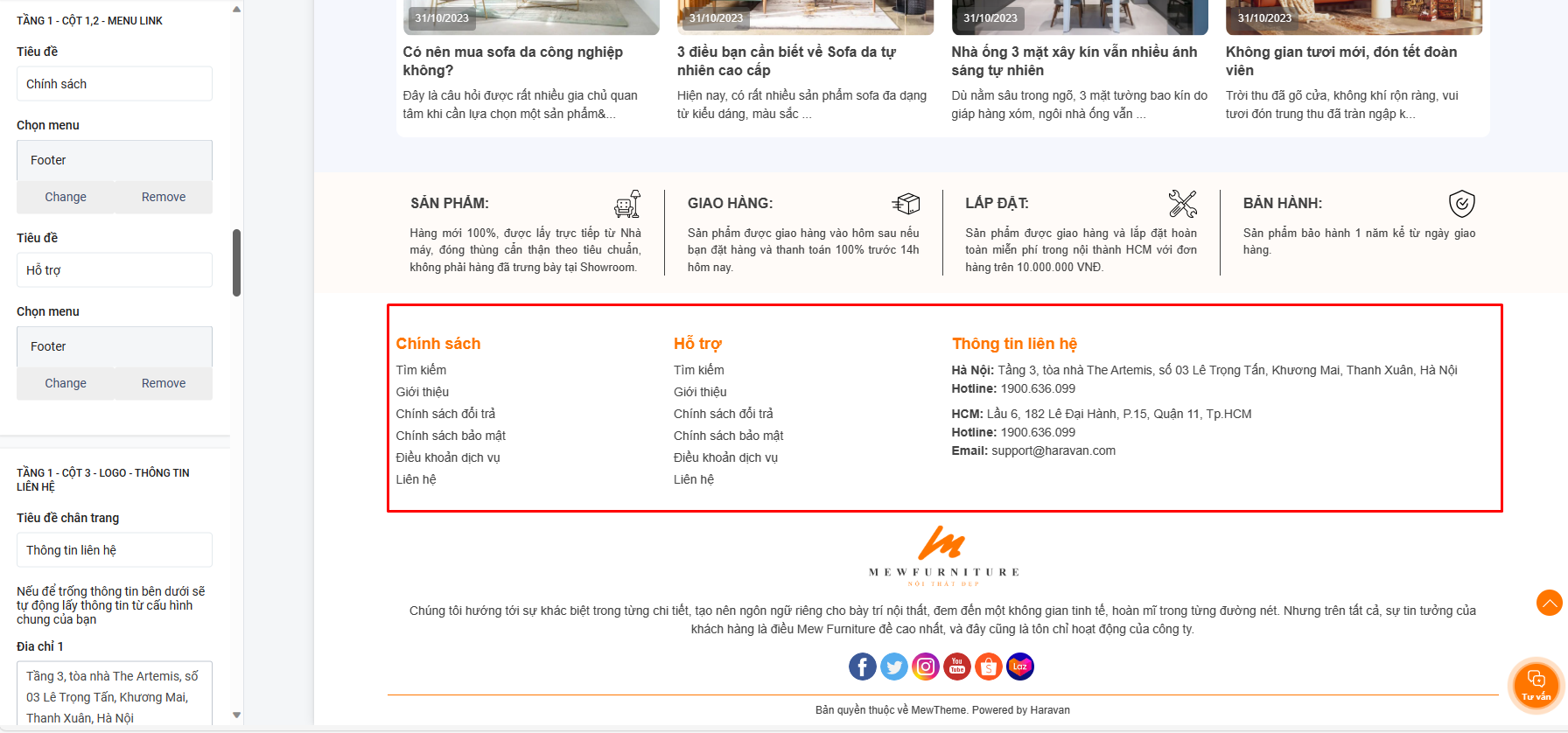 Quản lý và thiết lập các mục liên quan đến phần chân trang