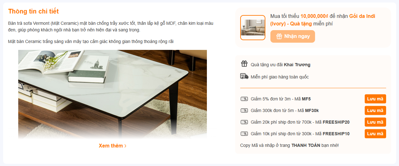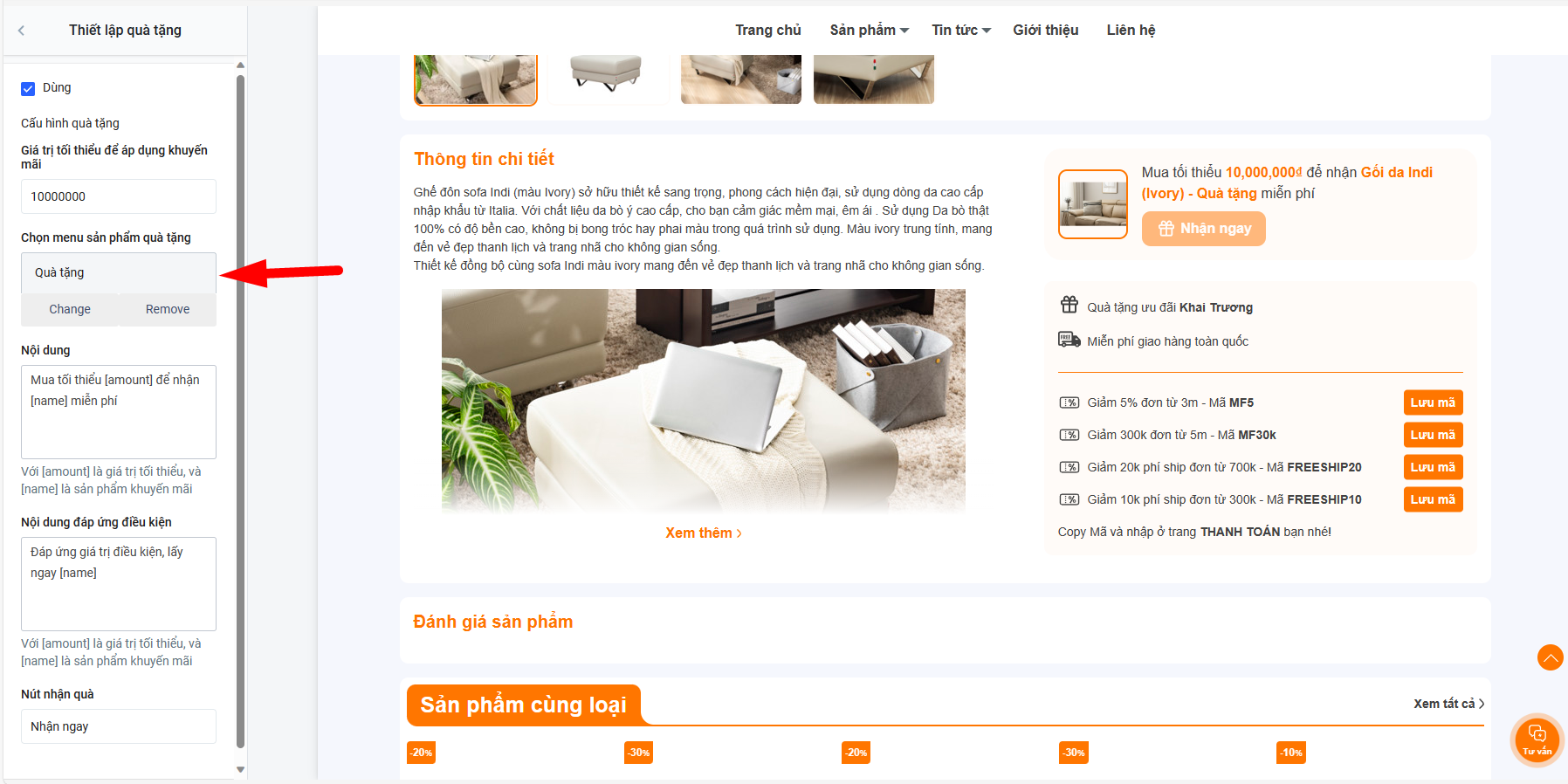 - Cho phép thiết lập nhiều mốc giá trị tướng ứng với nhiều mốc sản phẩm quà tặng khác nhau.