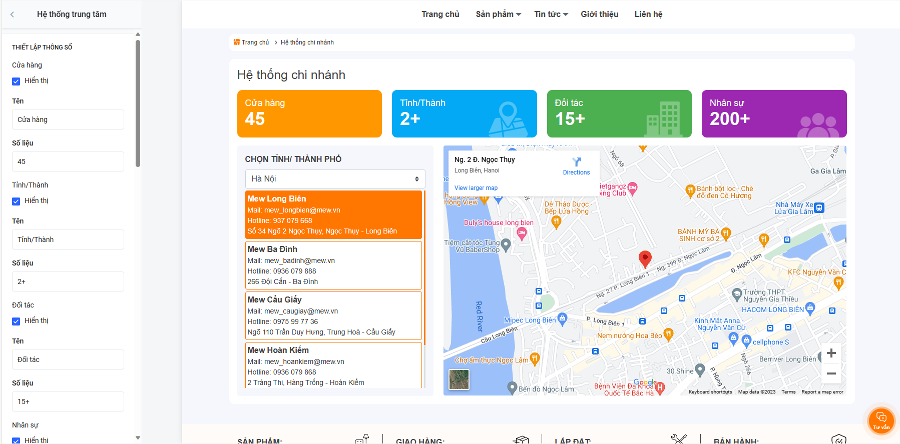 - Ngoài ra layout này còn hiển thị hệ thống cửa hàng và bản đồ chỉ đường, với 2 tuỳ chọn:
