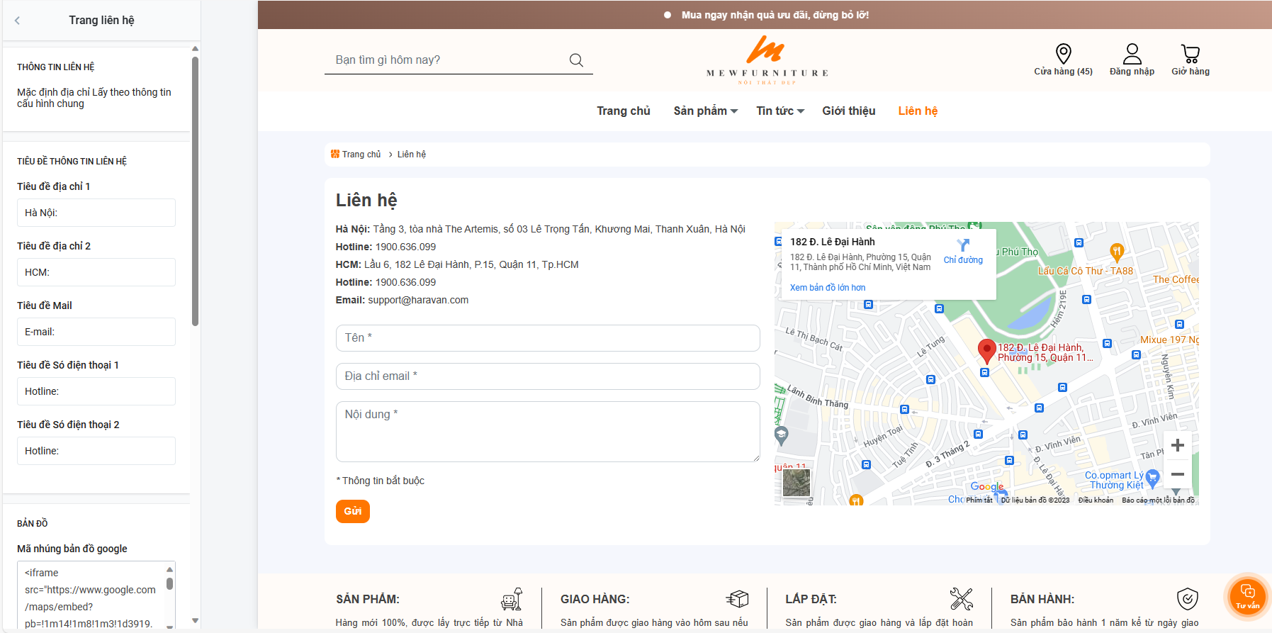 - Hiển thị thông tin liên hệ của cửa hàng và bản đồ đường đi