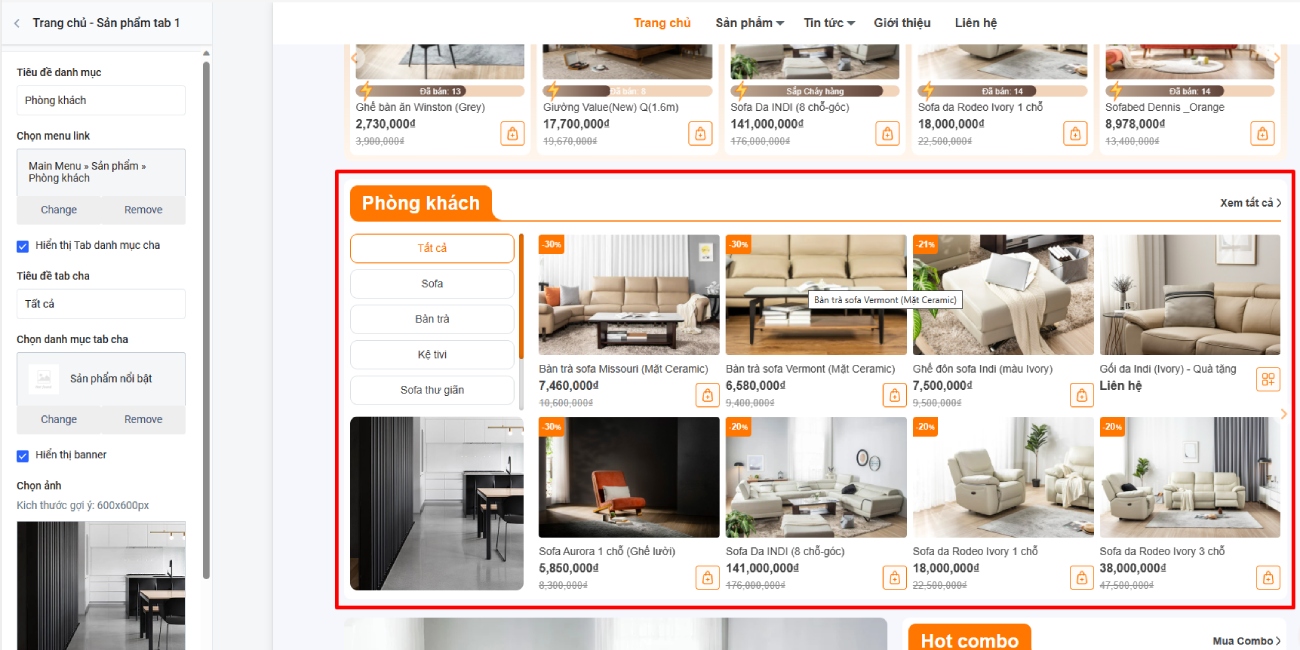 - Lần lượt là các module tab sản phẩm thiết lập dễ dàng