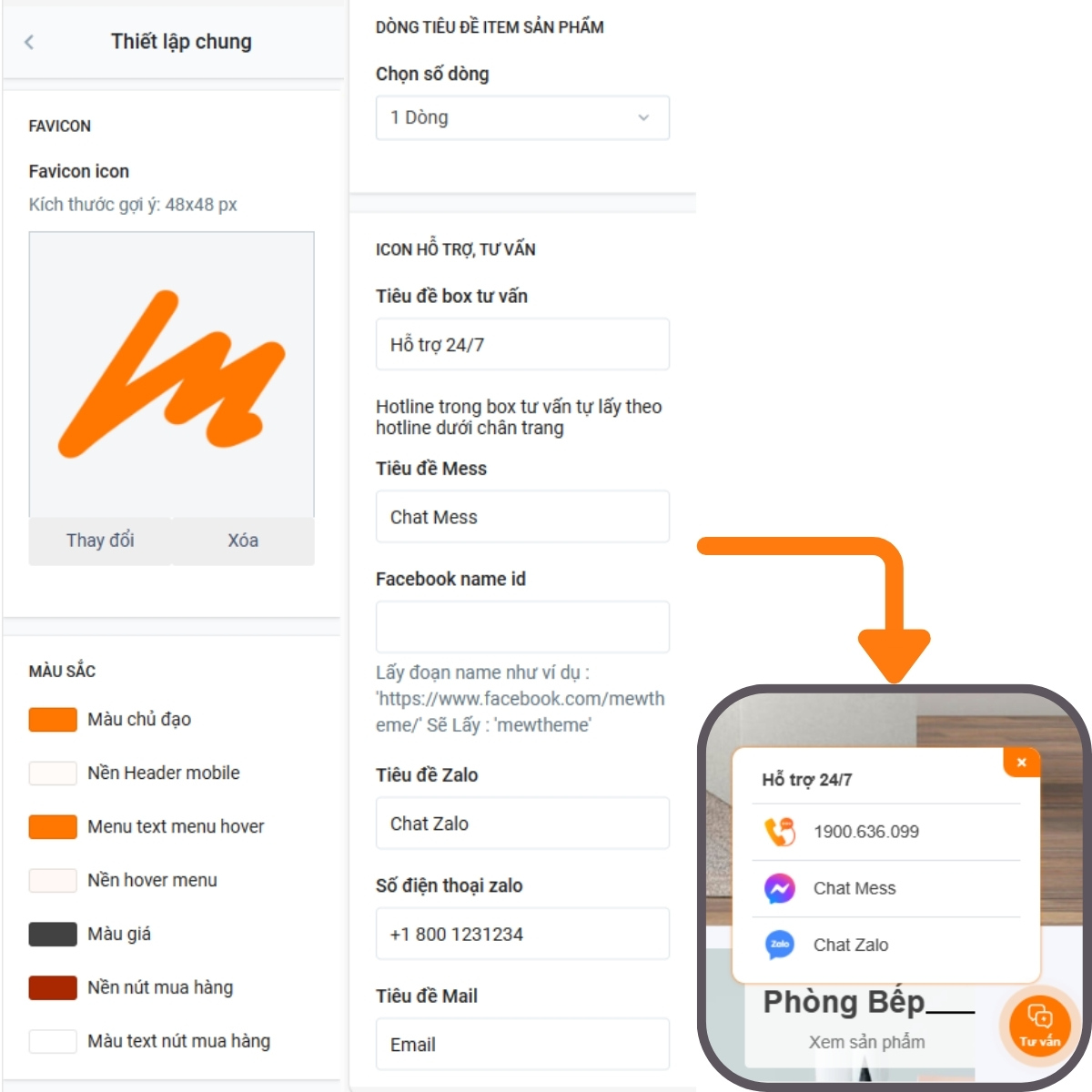 - Cung cấp các thiết lập thay đổi tiêu đề, thông báo để quý khách có thể thay đổi cho phù hợp với mong muốn hoặc đổi ngôn ngữ mà không cần can thiệp vào code